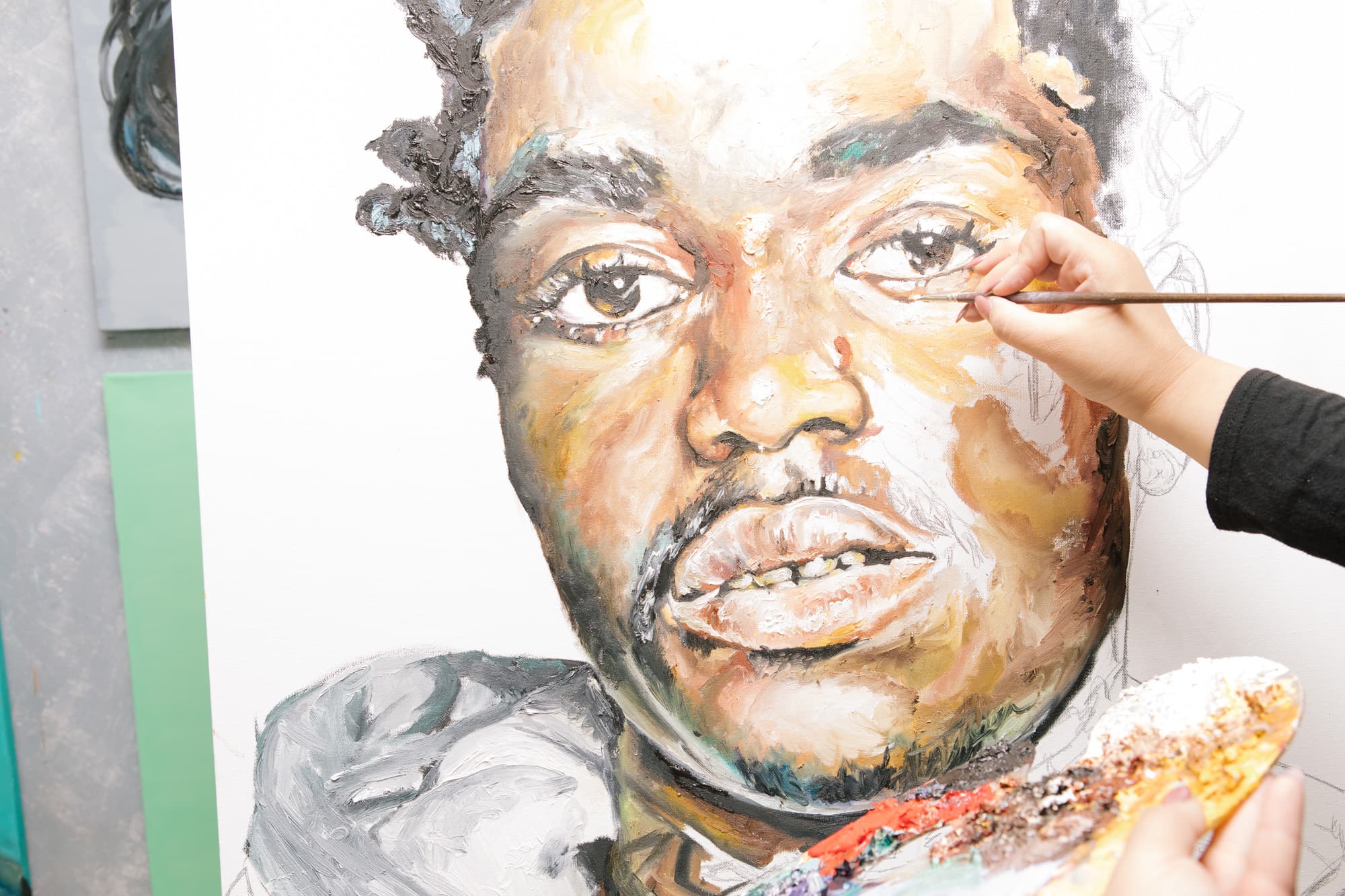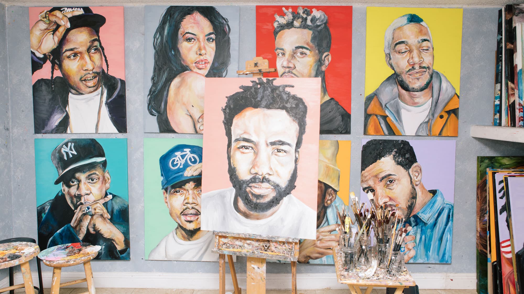 “I grew up with that music and it’s what I like. It wasn’t like I was painting for money or for someone else, so I think just naturally I was painting things that I was genuinely interested in, so that I could continue to have fun with it. I stuck with it and now I can only do portraits. I genuinely like painting portraits, it has become my thing. I can paint someone’s grandma—if they were poppin’ [laughs].”