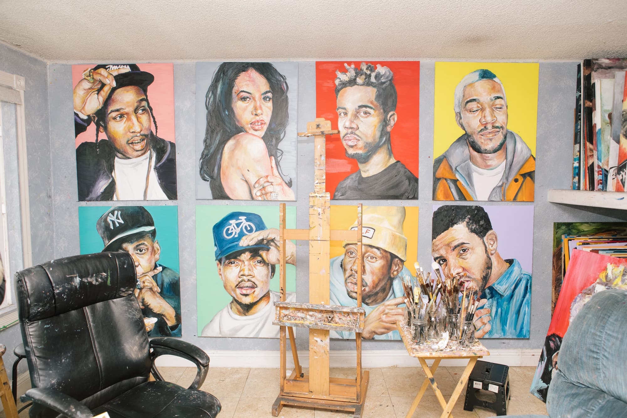 “I only started painting in 2013 because I wanted a present for Tyler, The Creator for his birthday. I had never painted before [and my friend and I were thinking], what can you give someone that can buy anything for himself? [My friend] said to try oil painting or acrylic painting. I just kind of fell in love with it.”