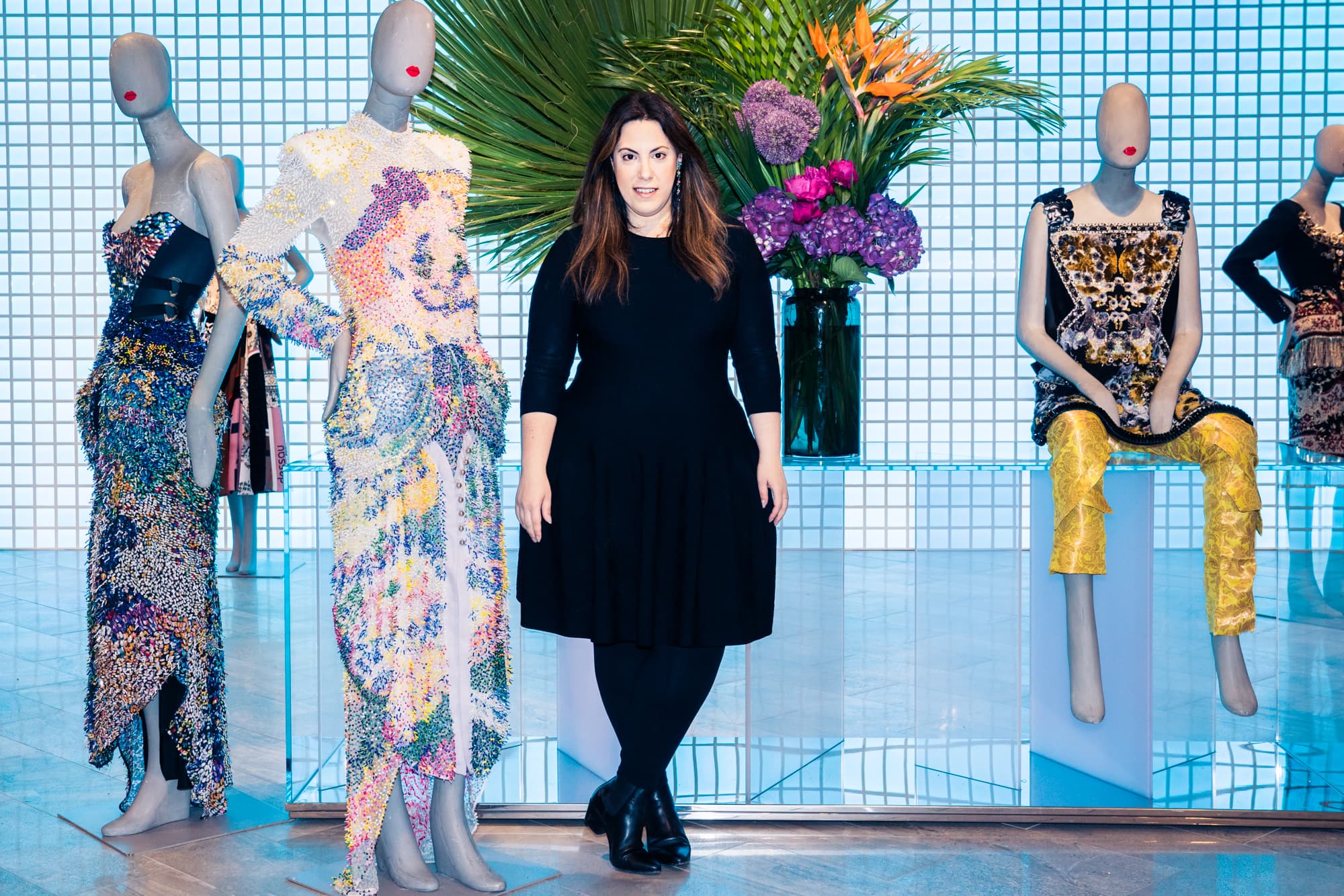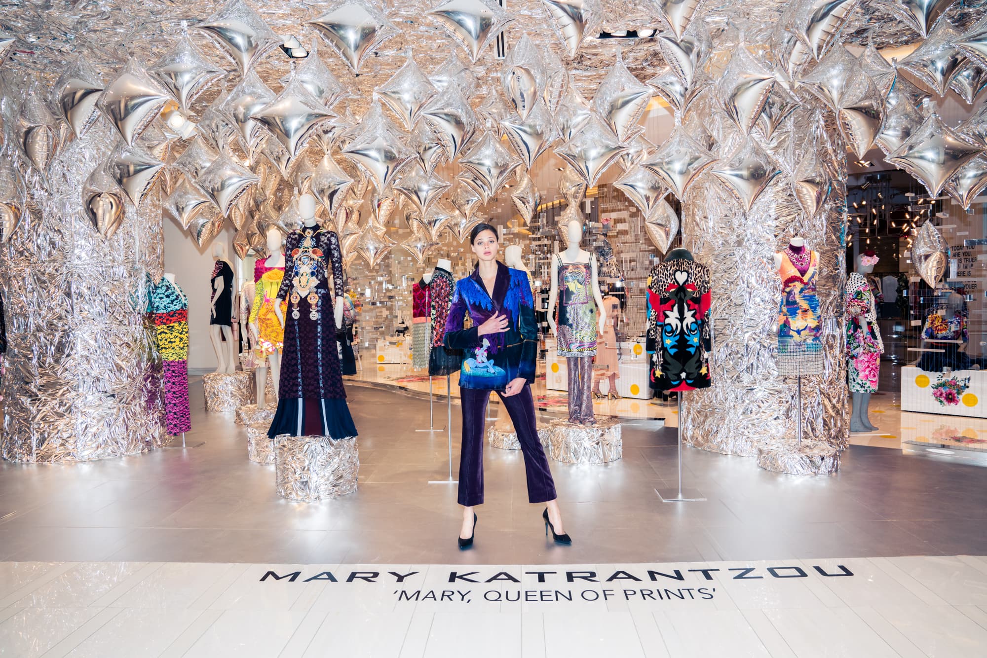 ) in Cannes later, and we’ve found ourselves sitting across from our dear friend in the middle of Hudson’s Bay The Room. We caught up with Katrantzou in Toronto to walk through 80 painstakingly curated pieces from her archives that are on display here through June—a nice sampling of the 180 designs from her decade-long career she showcased in her first solo exhibit at the Dallas Contemporary Museum this January. Although we got distracted by the exquisite work and details of her pieces up close, we did squeeze in some talk about how technology is fueling the change for sustainability in fashion, the most ambitious piece her team has ever worked on, and what her next collaboration will be.