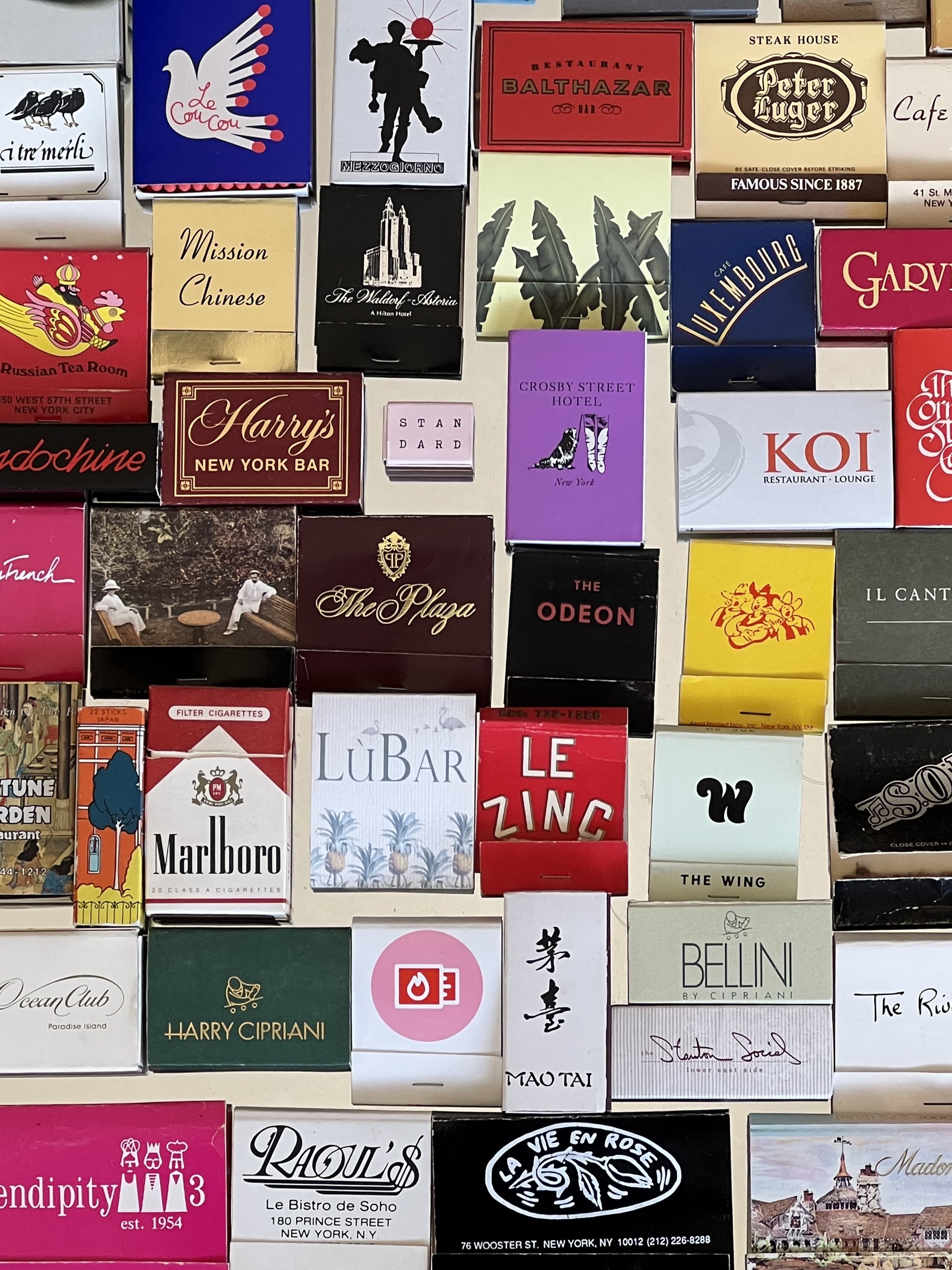 Bass exhibits her collection among many, like it on Oh What A Match, a site dedicated to the love of phillumeny, or the hobby of collecting different match-related items such as matchboxes, match covers, and matchbooks. Switzerland-based mother and daughter Nadia Tisone Cavallo and Alice Cavallo launched the corresponding Instagram account @oh_what_a_match in 2017 to document their collections. Both started amateur gathering interesting match covers during their respective youthful stints of living in New York City. A few years later, they began documenting collections like their own in their Match of the Day column. Chef Jeremy Lee, author, editor, and founder of magazine WM Brown Matt Hranek, and WSJ Style Writer Lane Florsheim, among many others, have shared the stories behind their budding collections. In reflection, the Cavallos note that restaurant matchboxes dominate the featured assemblages, followed by hotels—mementos of fun had. New York’s The Nines, The Odeon, and Via Carota each feature prominently across the site, boasting a trendy status and long waitlists for a reservation.