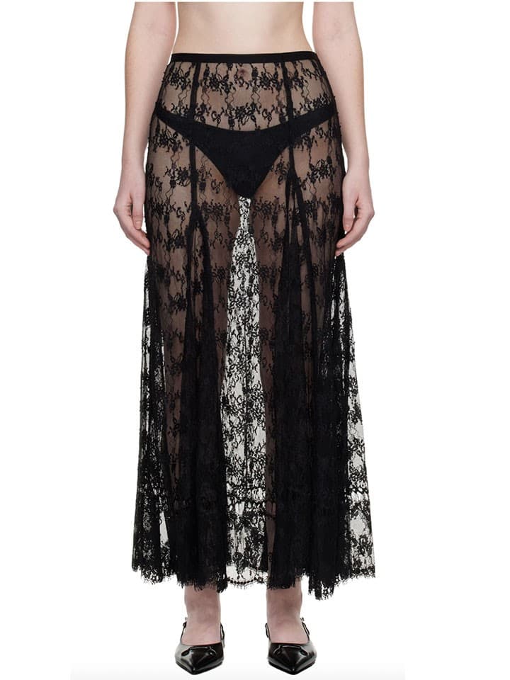 Maison MargielaElsewhere, we saw the trend on the runways this October in Paris at Maison Margiela, where Glenn Martens sent heavy leather black maxi skirts down the runway, and Ann Demeulemeester, where Stefano Gallici—whose work is underscored by gothic, piratey, and certainly boho codes—sent a series of silk brocade floor length skirts in pink and slate grey.