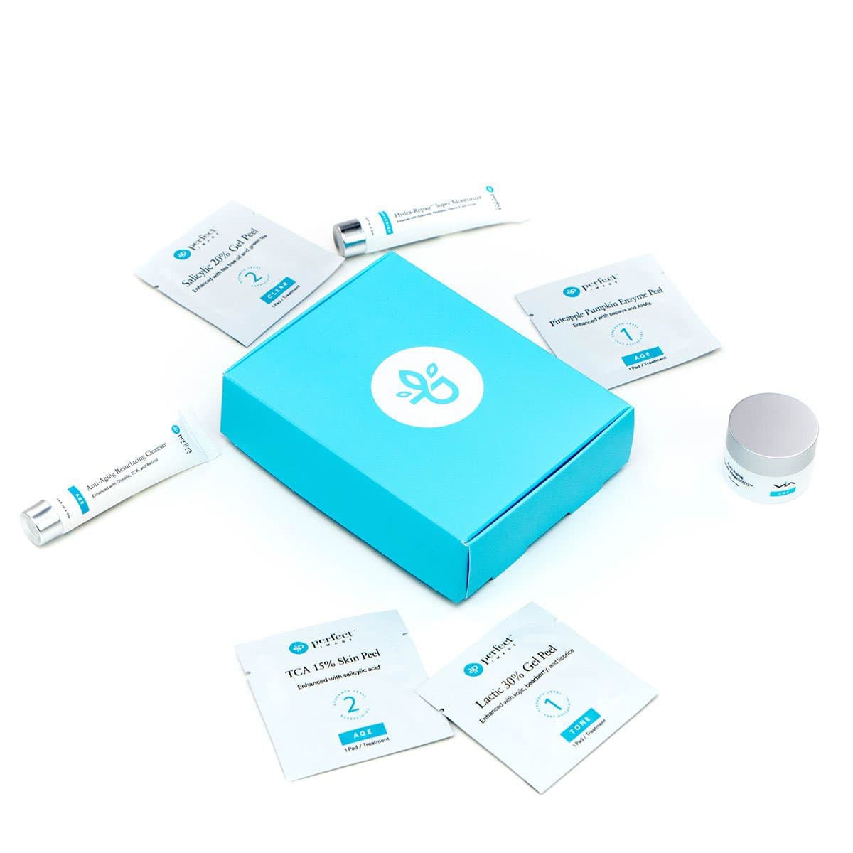 This nifty little kit provides a four- to six-week supply of trial-size, professional-strength chemical peels, including pre- and post-peel necessities. It’s completely customizable, so you can choose between 10 different peels—from stronger glycolic acid peels to medium-strength TCA peels—and select the best cleanser, moisturizer, and post-healing facial for your skin needs.