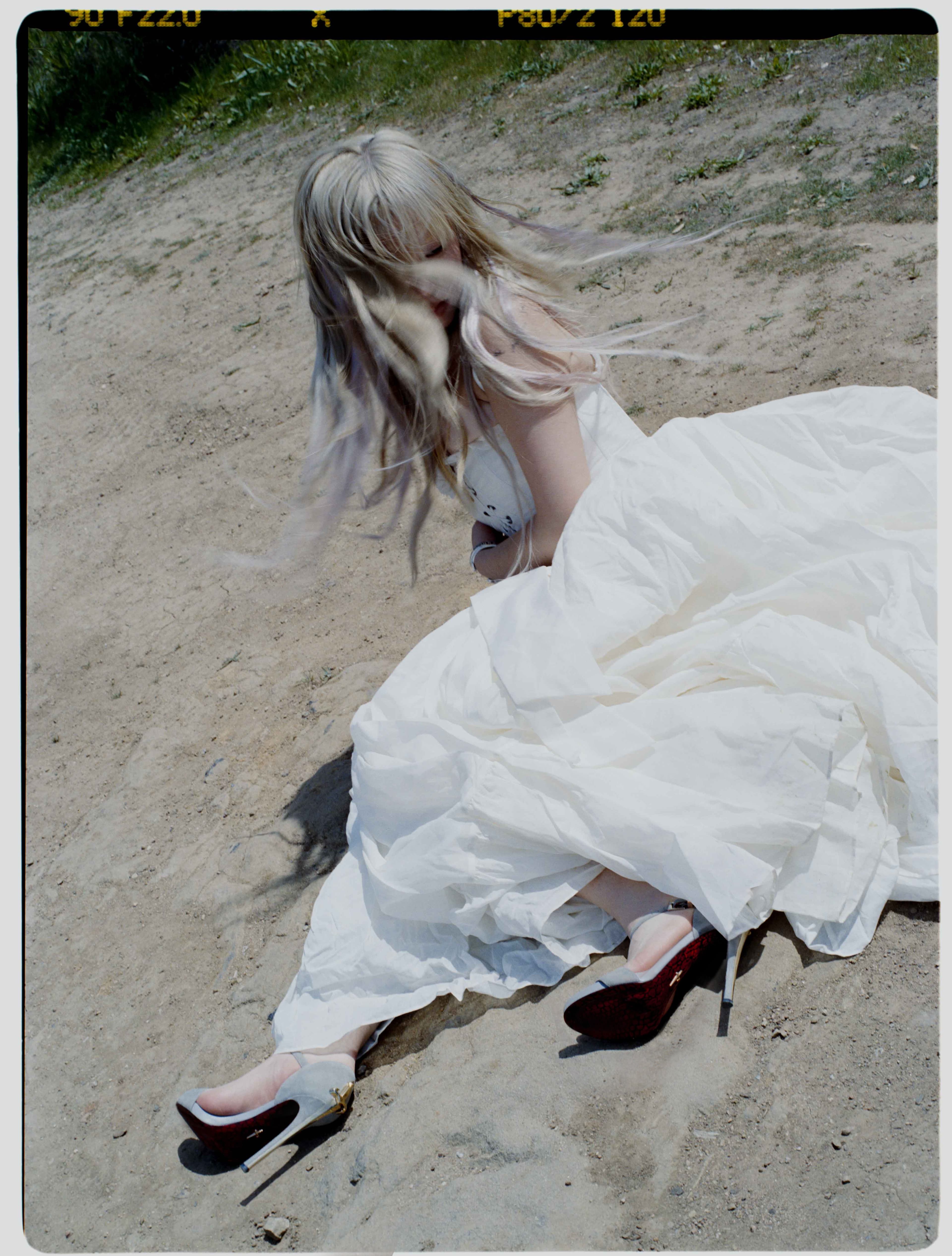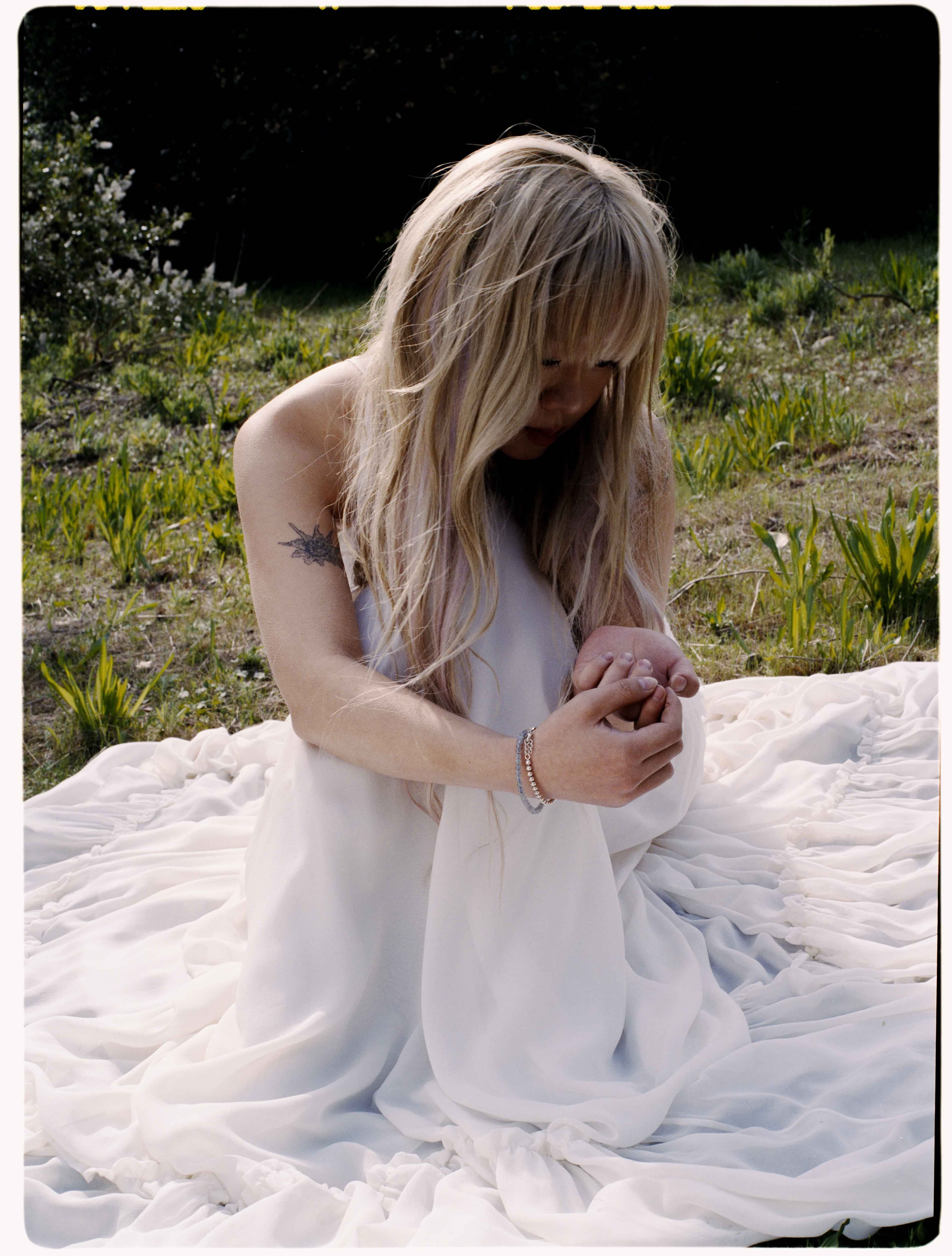 W: Marta Del Rio styled me for the album shoot and brought a bunch of looks to choose from. The vintage Givenchy dress has such a princess-ey flow, which caught my eye right off the bat. We tried the dresses on in my apartment, and when I sat down on the floor in the Givenchy dress, it created this circle of flowy fabric around me. Simple and elegant, and it made me feel so pretty.