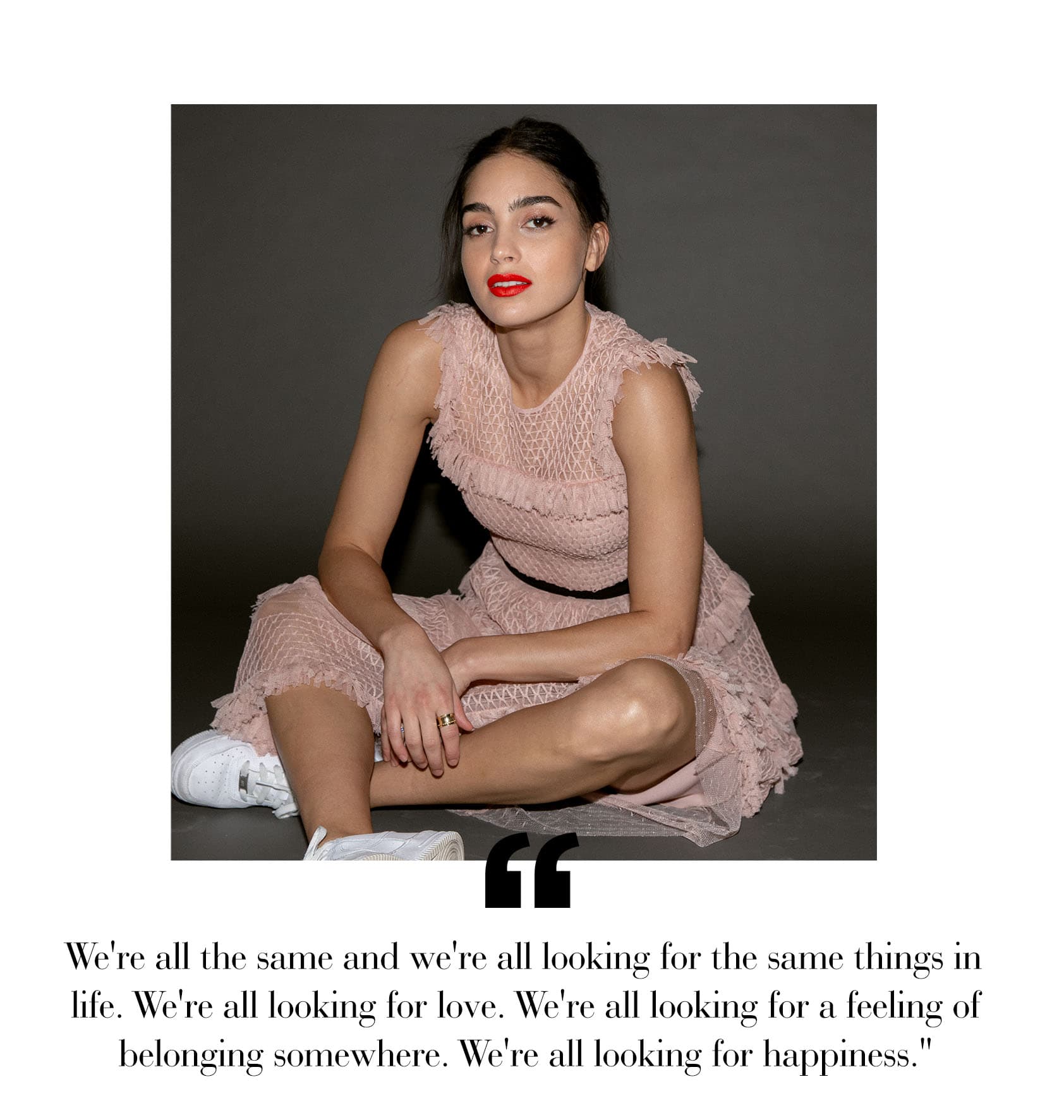 stands out for its performances—thanks in large part to Barrera. But that’s not surprising when you meet the Mexico native—she’s warm and infectious, much like her character, even though she’ll tell you she relates to her on-screen sister, Emma [played by Mishel Prada], more. “I’m very much career-oriented. I’m very organized and disciplined. I’ve always tried to go over expectations. In school I was always top of my class; I always wanted to be the captain of the team, always reaching to be the best at whatever I was doing. But I think what Lyn has is love for her family and for her sister, and this need to be loved all the time is something that anyone can relate to,” Barrera confesses. As we cozied up at Coveteur HQ, we spoke with the actress and singer about the narratives of the show, why it’s more important than ever to create projects representing the Lantinx community, and what we can expect in season two of