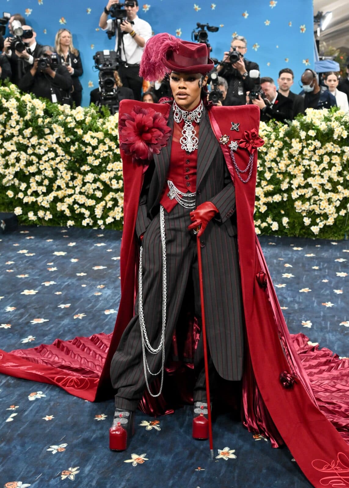 Kevin Mazur/MG25/GettyFor the 2025 Met Gala, Erivo opted for drama. Her custom Givenchy by Sarah Burton boots and jacket were encrusted with ruby-red stones, while her corset was laced in the night's standout shade.