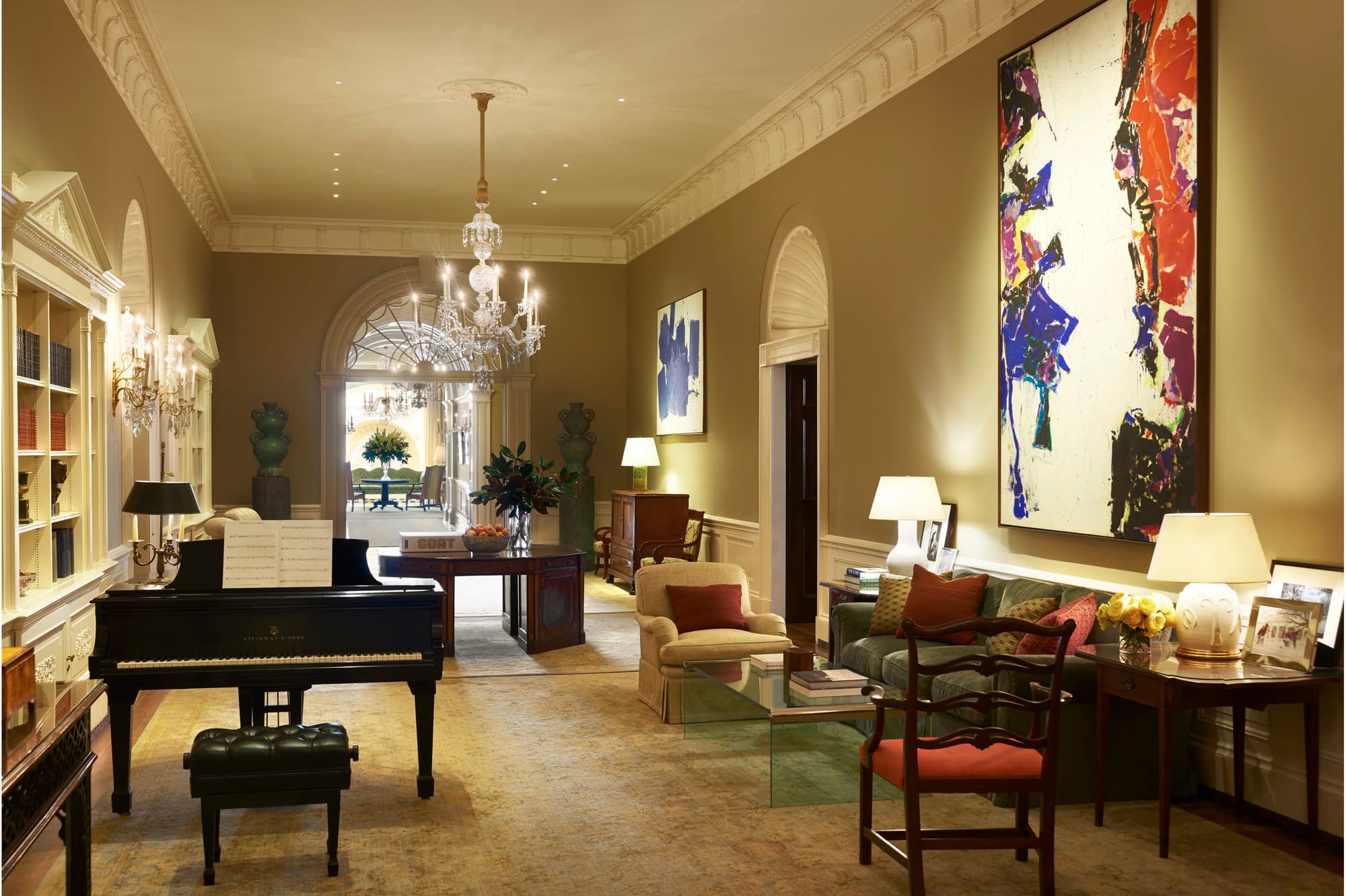 “I think we pushed it. Again, the contemporary art was really pushing it, but that was the big gesture. They were huge paintings since the rooms are so tall. There were elements like 20th-century coffee tables and other things that add a sense of modernity to the space. I also think you want to keep it really simple. Again, four years or eight years is not so long, but it’s long enough that you want it to feel comfortable. You want rooms to be simple enough and flexible enough that it all worked with what was there.”