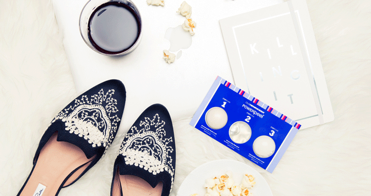 And that’s when Ole Henriksen’s Power Peel enters my life (how serendipitous!). I’m no stranger to a good exfoliator or mask, but this is a three-in-one. As in, the product, which is a box filled with six “peels” has three pods for three separate steps: an almond polish scrub; a lemon strip flash peel; and a chamomile mask. In other words, it combines three different treatments into one handy pod-package—it’s the kind of beauty product that leaves you thinking, ‘Why didn’t I think of this?’