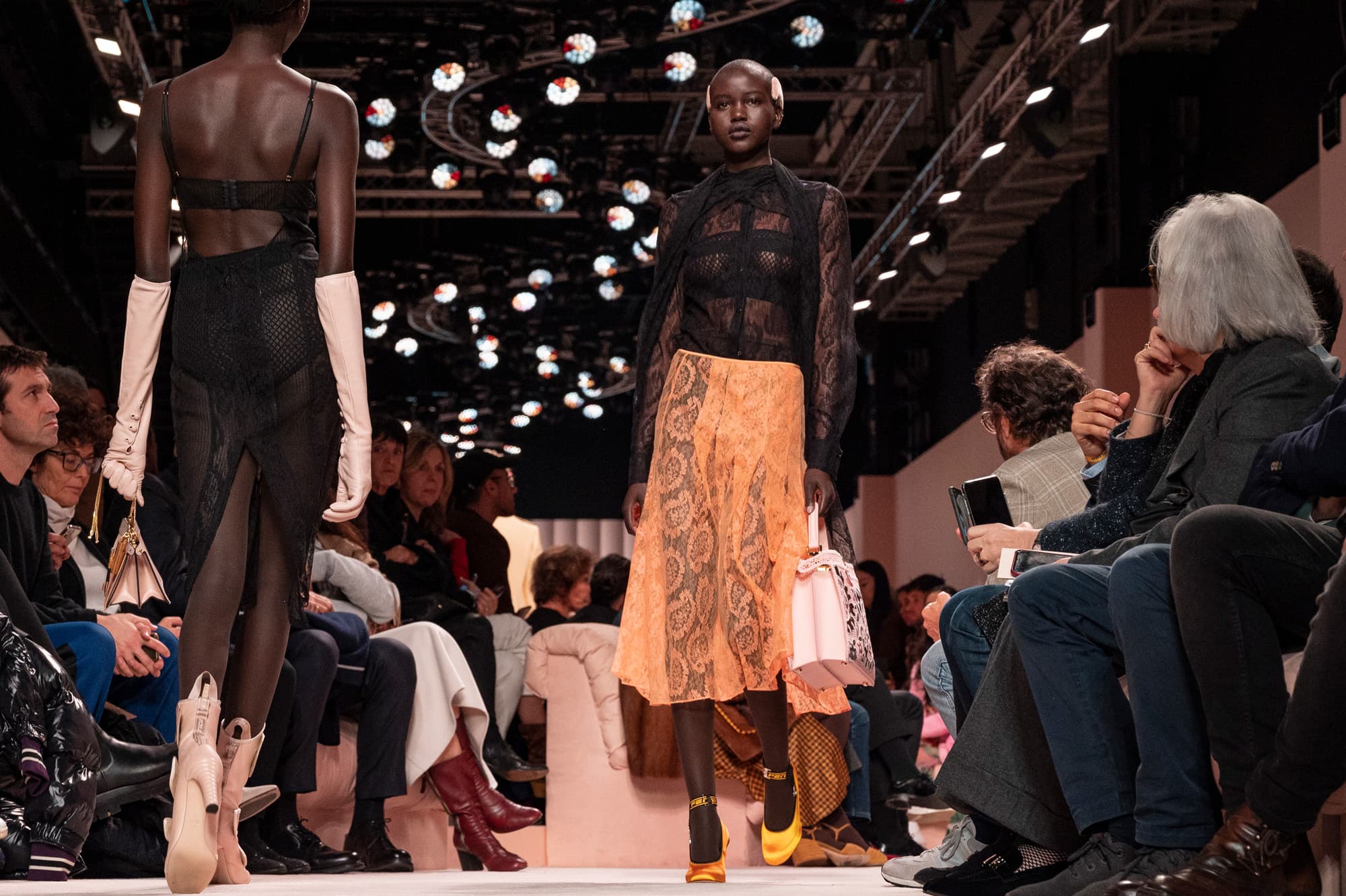 esque productions for Gucci, Alessandro Michele flipped the conventional fashion show on its head. Opting for an inverted layout, the designer brought the backstage to the front of house, allowing guests to see models, hairstylists, and makeup artists amid their preparations. During the show, the cast was dressed by the house’s atelier staff on a rotating, glass-walled stage, exposing the hidden aspects of a runway show. Once the troupe of sixty descended from the carousel for a final walk, Gucci’s creative team stepped forward for a bow alongside Michele. Despite its demystifying effect, the show’s irreverent yet ritualistic undertones made for unforgettable fashion magic.