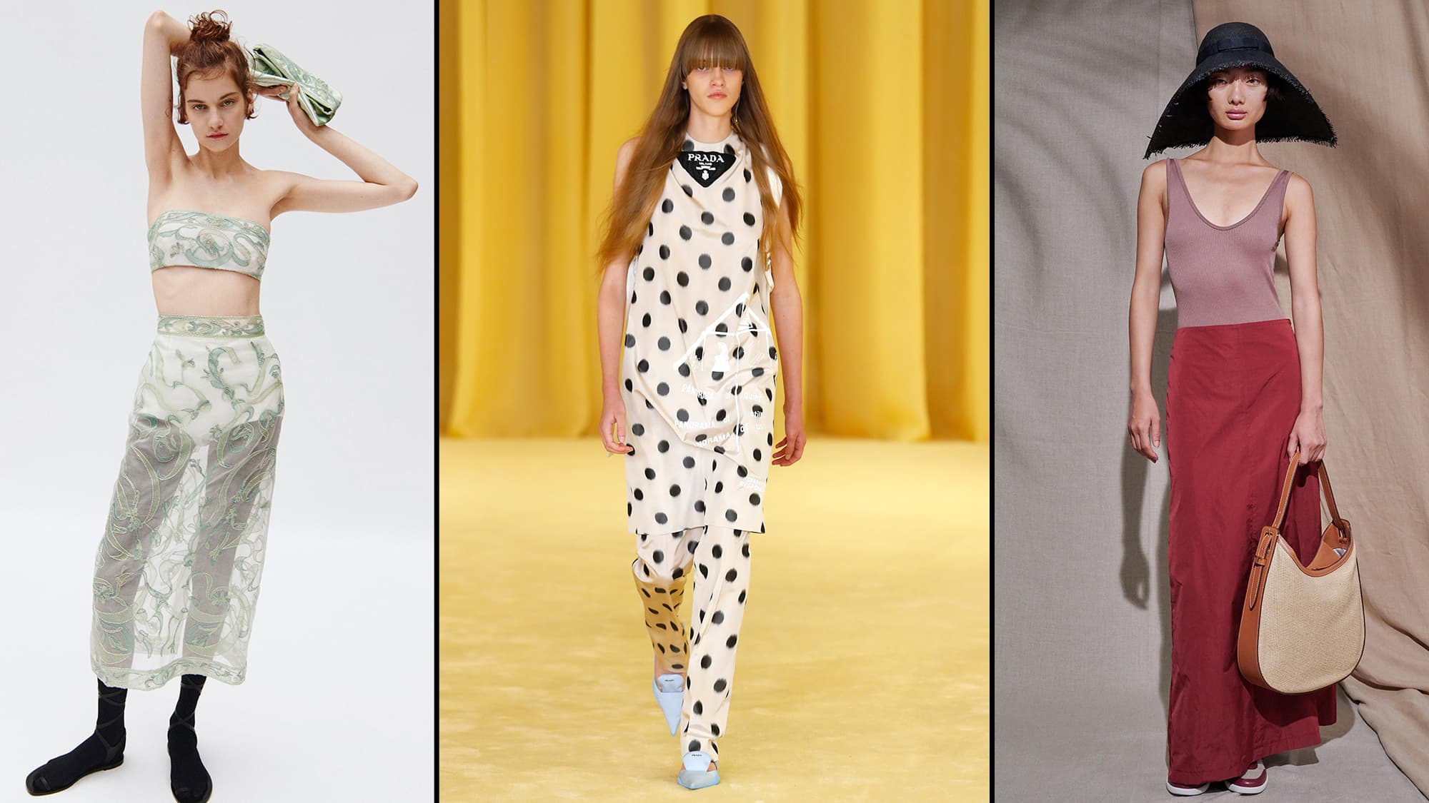 If a suit and a dress or jumpsuit had a super-fashionable love child, it would be a matching set—and we can’t get enough of them. At Ferragamo, we went mad for head-to-toe plaid, while polka dots on streamlined silhouettes captured our hearts at Prada.