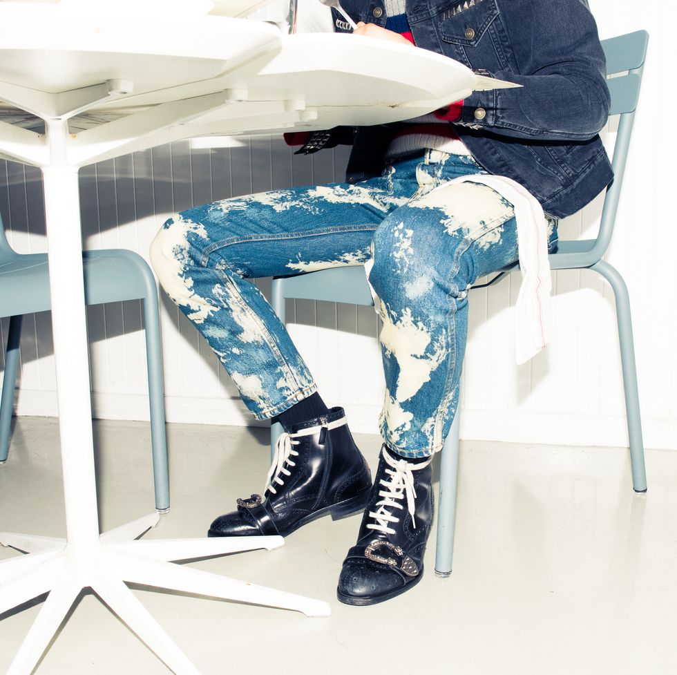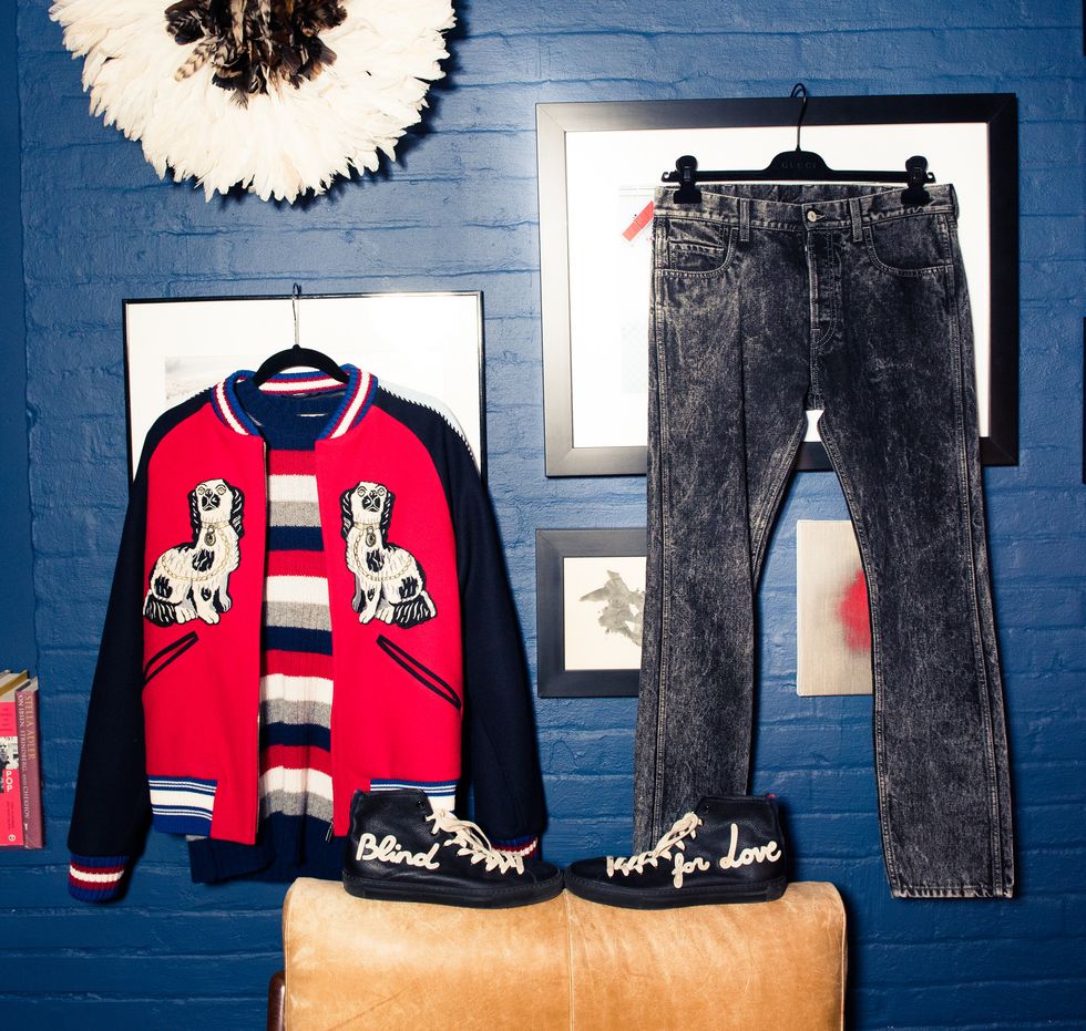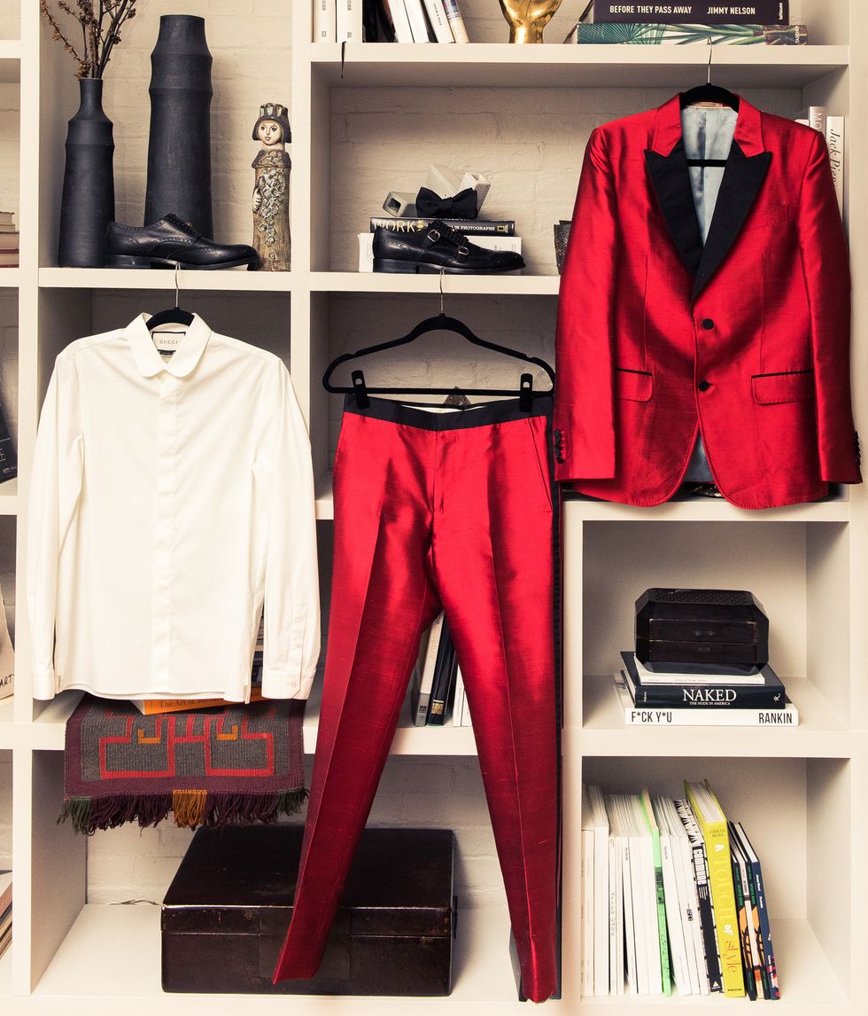 “I love everything Alessandro Michele does at Gucci. When I wear his clothes, and especially this suit in that powerful red, it makes me feel kingly. The embellished tiger on the back with that burst of shimmer... And the fit is perfect, which is really important.”