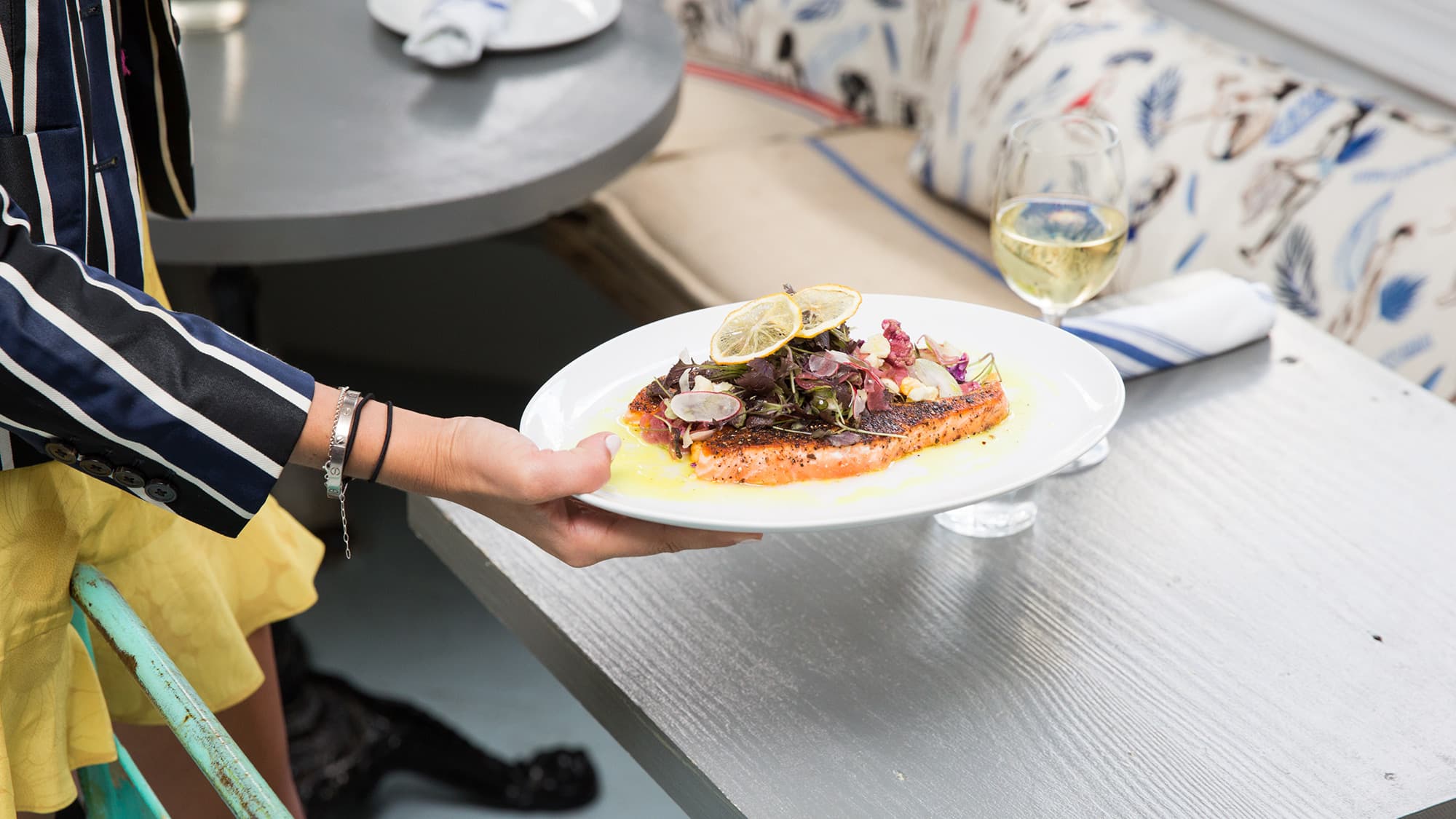 It’s fitting that her restaurant’s moniker has a childhood backstory, as the place is truly a family affair. Stallings’ mom is even on hand floating in and out of the kitchen to help with various tasks as we chat. “A lot of the design comes out of the apartment that I grew up in,” she explains, referencing the bright floors and industrial chairs. “The menu is built out of what my family eats at home, and I’m sort of a health fanatic, so [to make] everyone happy we definitely have a little bit of everything. I knew I had to have an amazing salmon because I eat [that] probably six days a week. It’s a half-cooked salmon, with pickled vegetables. It’s so good.”
