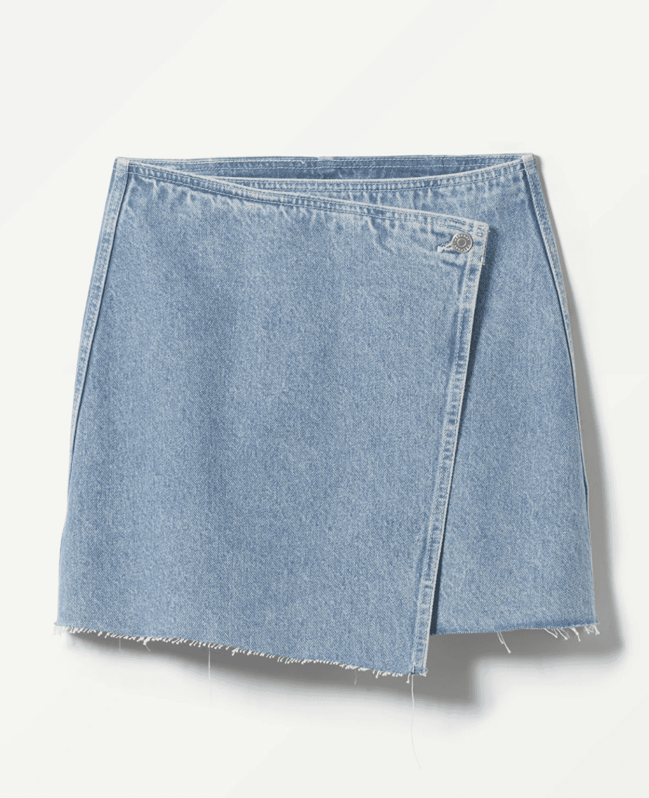 Denim Wrap Skirt + T-shirt + Kitten Heels