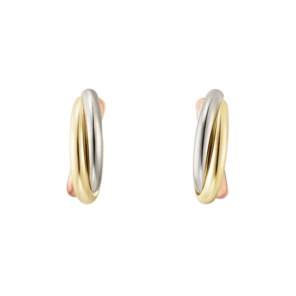 Cartier raises this question: why combine two metals when you can combine three? An even blend of white gold, yellow gold, and rose gold in the form three intertwined rings, these earrings are very dainty but make a statement up close.