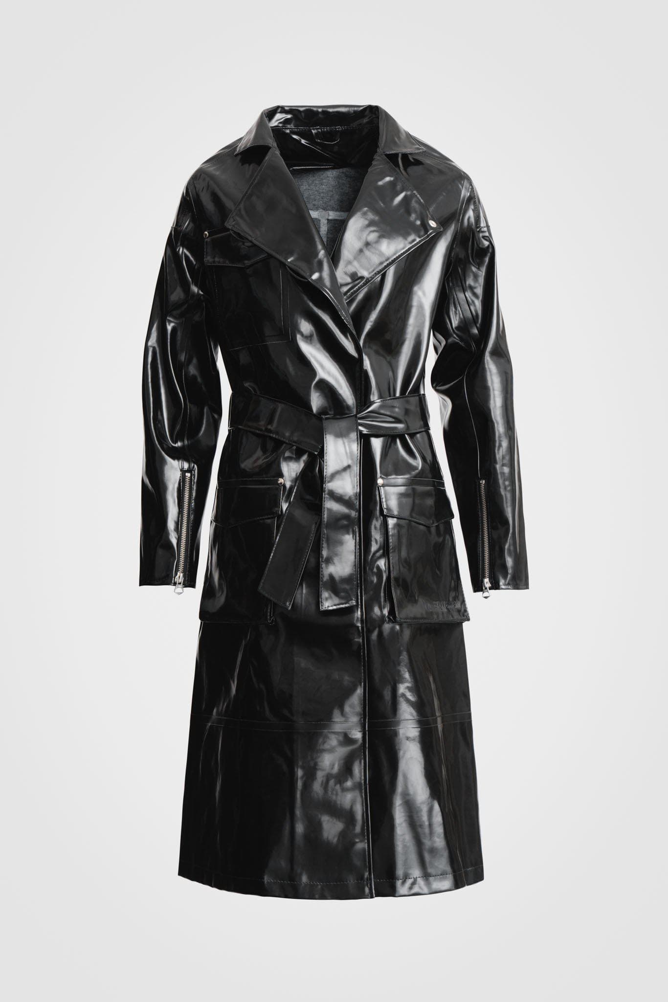 "Today is a cold, rainy day here in NYC, so I decided to go classic all-black chic to the stu. The turtleneck top with the buttons I got in a market in Paris. Had to sandwich a hoodie for comfort in between this vintage rain jacket I found thrifting. I'm wearing my favorite jeans from Lemaire and my vintage Prada Sport sneakers. I'm a heavy silver jewelry-wearing girl and never leave the house without something shiny on my wrists and ears. I'm wearing E.M. Kelly hoops, and my bracelets are from all over the world. I like to collect jewelry when I travel, so each one represents a place I've been."