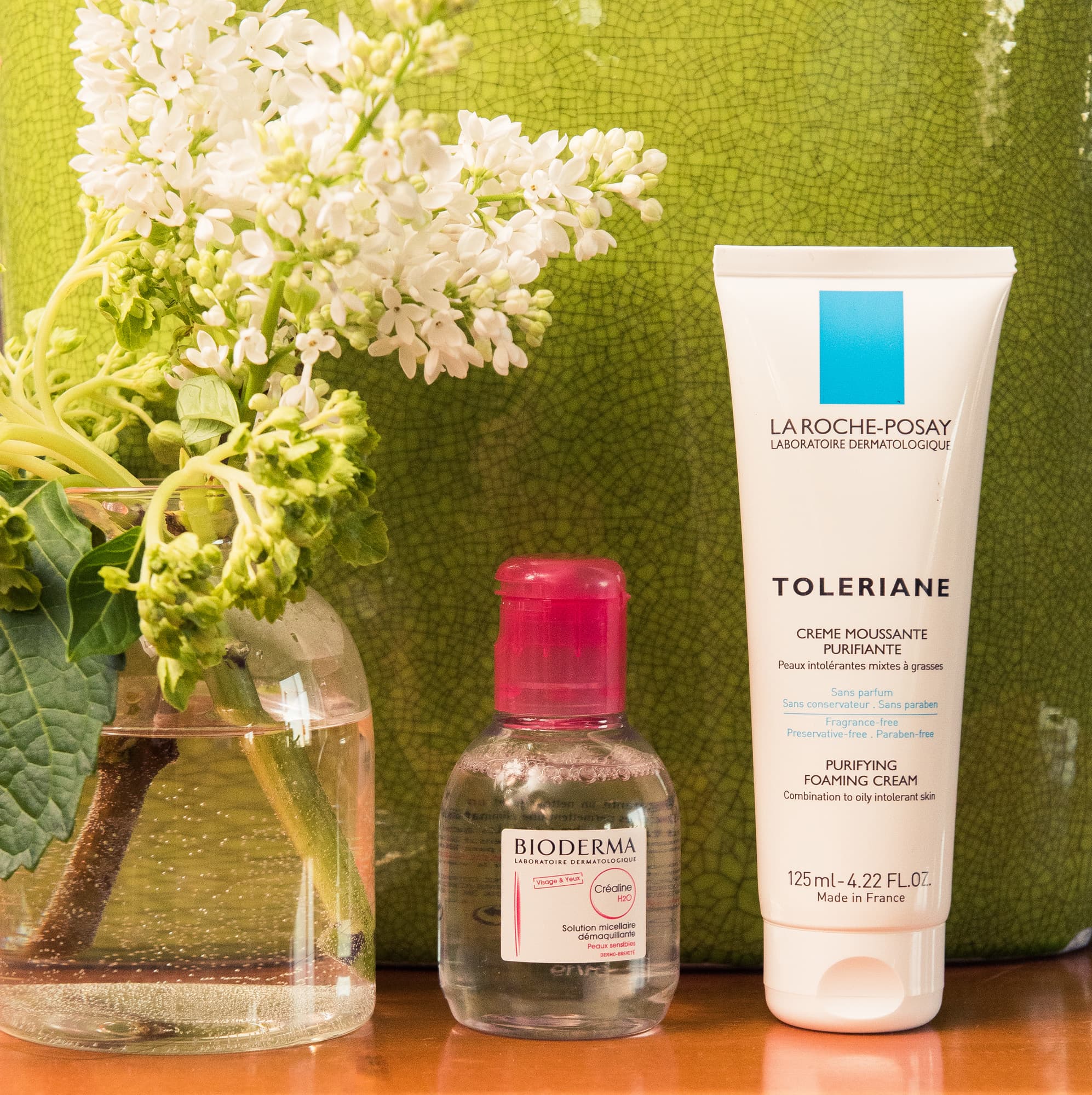 “I usually have to run out of the house right away, and I usually have to remove makeup from the day before with Bioderma. If I have some time or if I have some meetings, I use La Roche-Posay Toleriane cream, I curl my lashes, use mascara, sit on the couch and do some emails and drink my tea for half an hour. Usually, I run out of the house and work out or go to work. Because going to work means having my hair and makeup done, I only have to put my hair in a bun and brush my teeth.