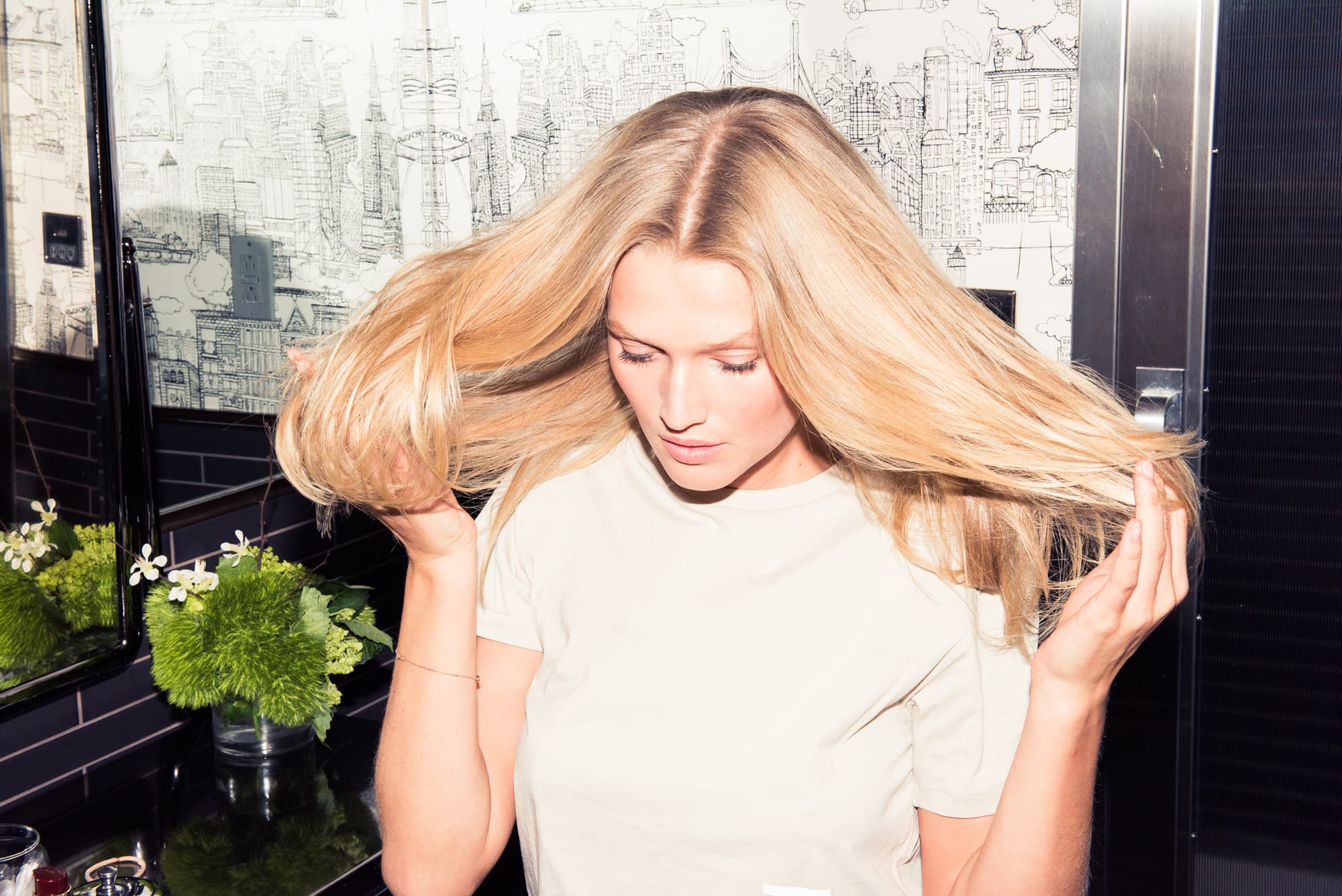 Not that this is an industry secret or anything, but for the most part, when it comes to being the face of major cosmetics or hair campaigns, the model needs to submit to being done up in the image of the given brand. At the end of the day, it’s that chameleonic ability that a lot of models are paid (and paid a lot) for. Which is why we were so surprised when we met Toni Garrn last week when she was announced as the face of Kérastase’s new Aura Botanica line, and she told us that she’d never, ever dyed her hair—and had turned down major campaign options in favor of holding on to her natural look.