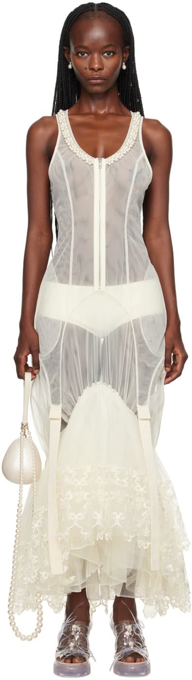 Off-White Fitted Zip-Up Maxi Dress