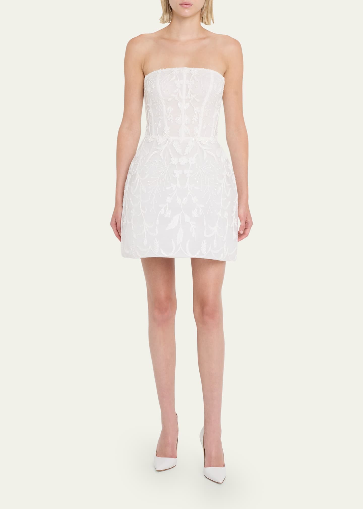 Floral-Embroidered Strapless Dress with Structured Skirt