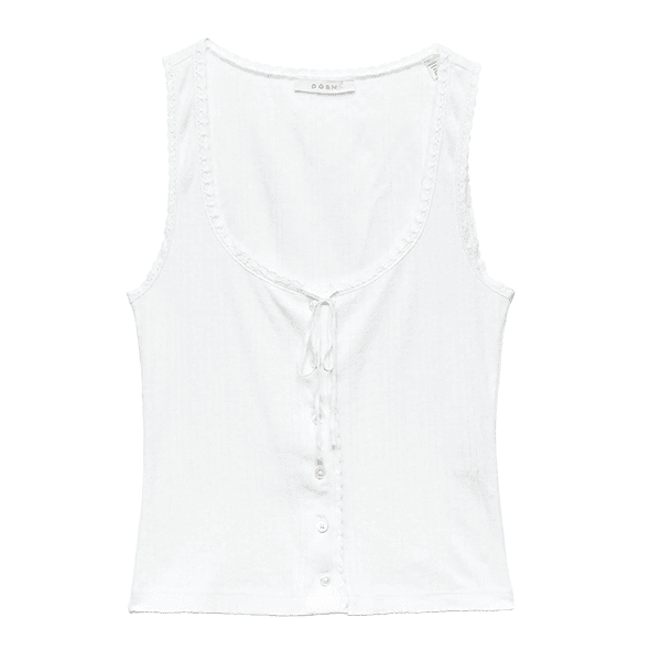 "I'm sucker for anything that includes pointelle details—I just think it's the sweetest way to elevate any basic. This 100% cotton tank features pointelle galore as well as other fun details: mother of pearl buttons all the way down, scalloped trim, and a tie detail at the top." - Bianca Asare, Associate Editor
