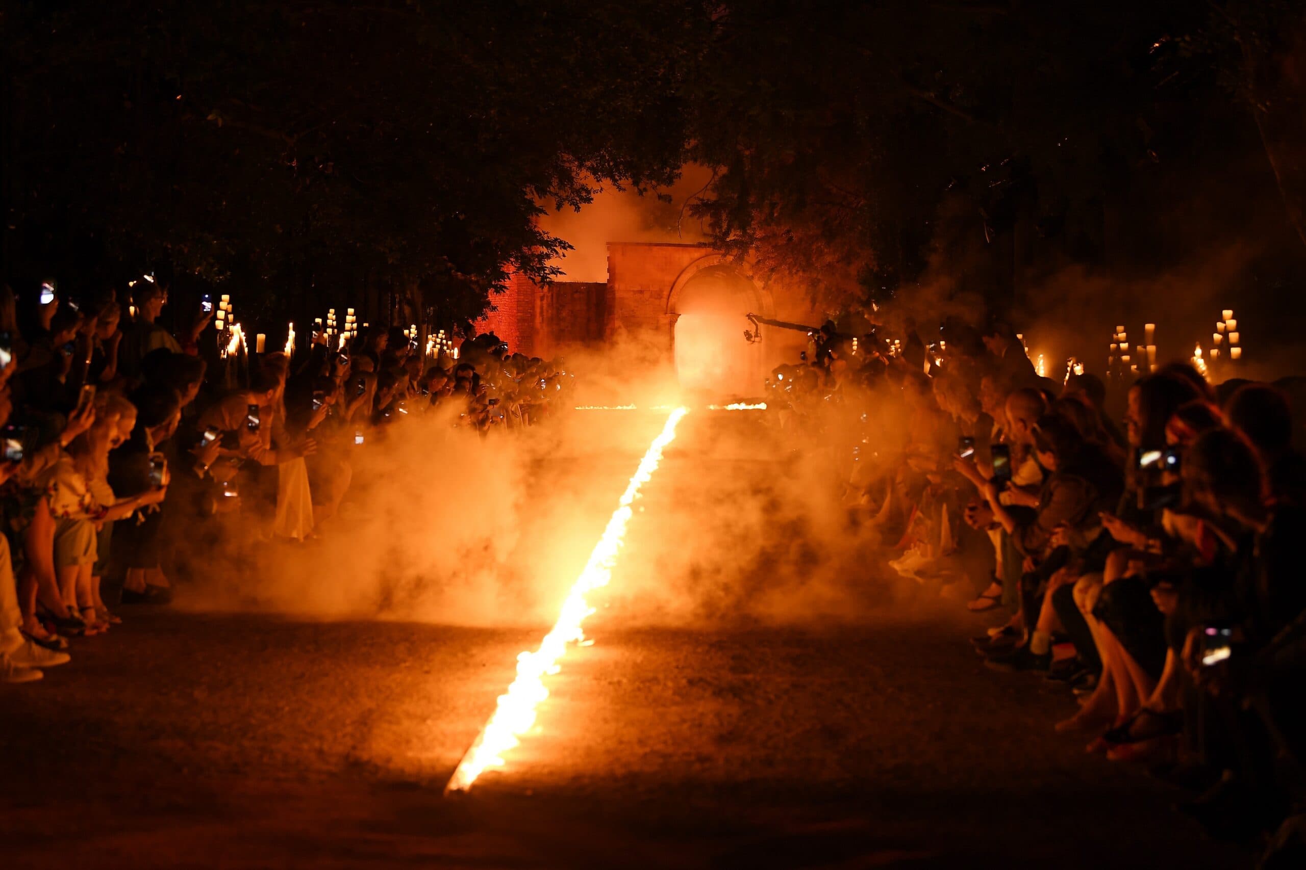 Entitled “Rave in a Cemetery," Alessadro Michele’s Gucci Resort 2019 collection took place in Arles, France, where the Gucci team flew in 400 guests to witness the collection at night in this historic burial ground. Having been to the site, I can’t imagine what it would have been like filled with Gucci models in couture-like pieces. Let me paint the picture anyway: lines of flames lit the runway as models walked in ‘70s flared pantsuits, tartan skirts, opulent quilted coats, and silk gowns navigating the runway and burial ground.
