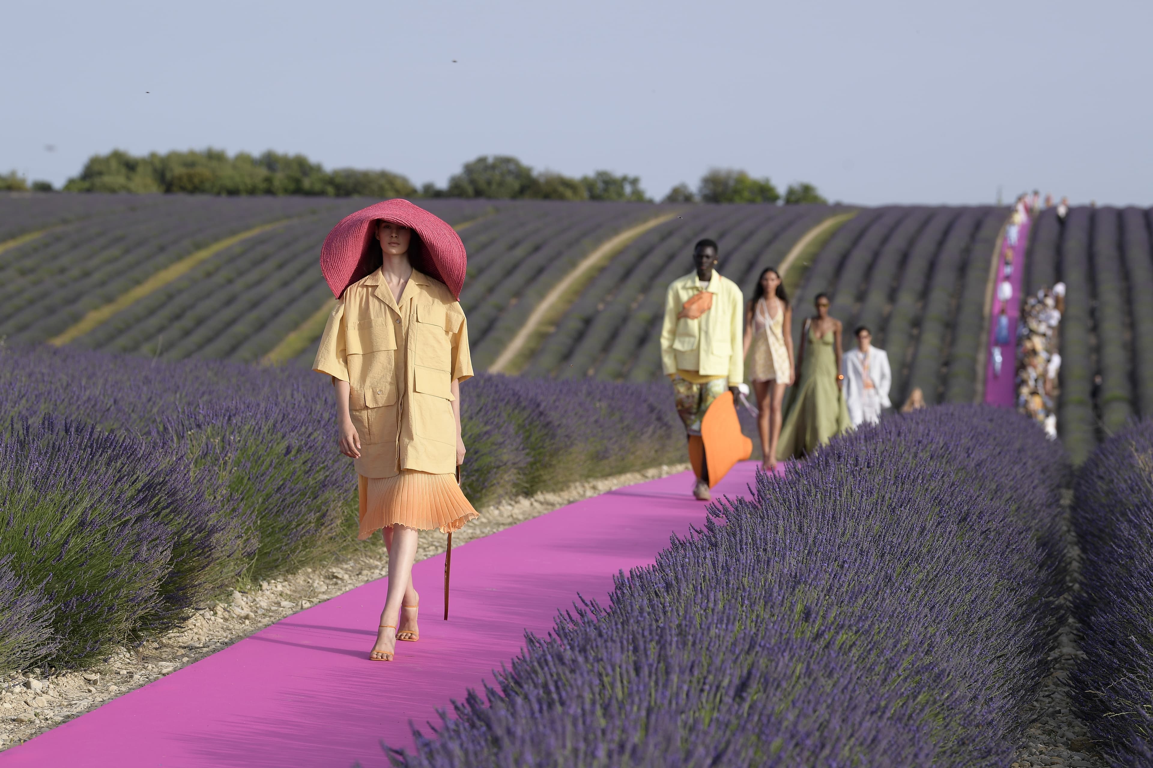 For Simon Porte Jacquemus’ 10th anniversary collection, and one of his first viral show locations (the designer has now become known for hosting shows in various locations across France), his Spring/Summer 2020 collection, titled “Coup de Soleil,” took place in Valensole, Provence, in a blooming lavender field on a sprawling hot pink carpet. The collection, airy and bright with plenty of Jacquemus’ classic resort design cues, was led by Jacquemus’ long-term androgyne muse Mica Argañaraz, and was his second co-ed collection.