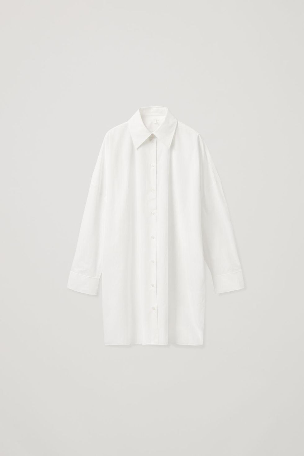 A good white dress is a summer staple, but as the season changes, a long-sleeve version is more appropriate. For a voluminous mini like the one above, opt for a minimal-looking mule in the same color and sleek black accessories.