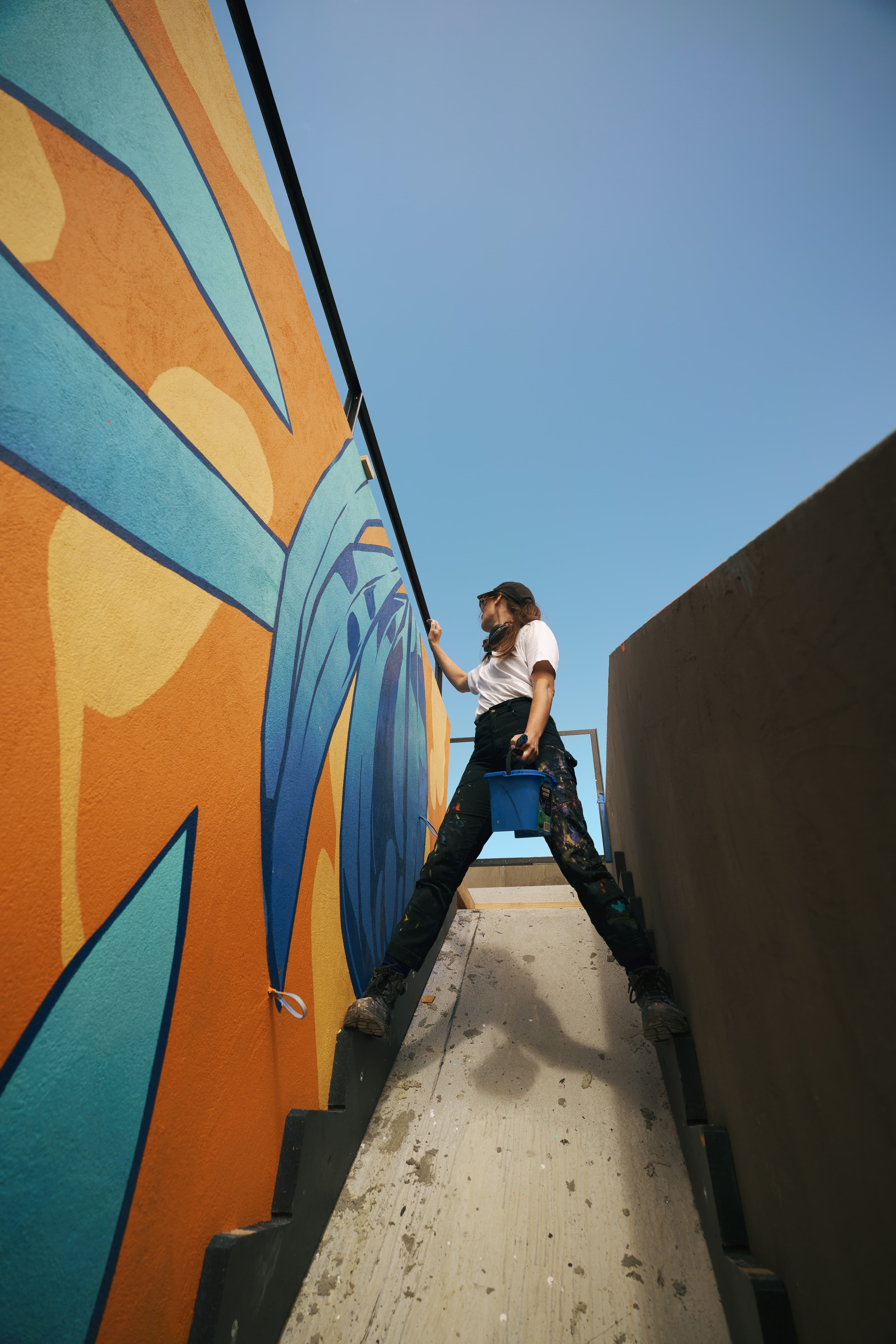 GR: “You slowly build up to it over time. The first one I did was one story, and I was like, ‘This is huge!’ Then I did a two-story, then three, then five—you slowly get bigger and bigger and, eventually, it feels normal. I never really think about it being large or overwhelming anymore. But it is super physical, so it’s like training for a sport. When you stop painting for a period of time, it’s easy to get injured, so you have to keep training for it.”