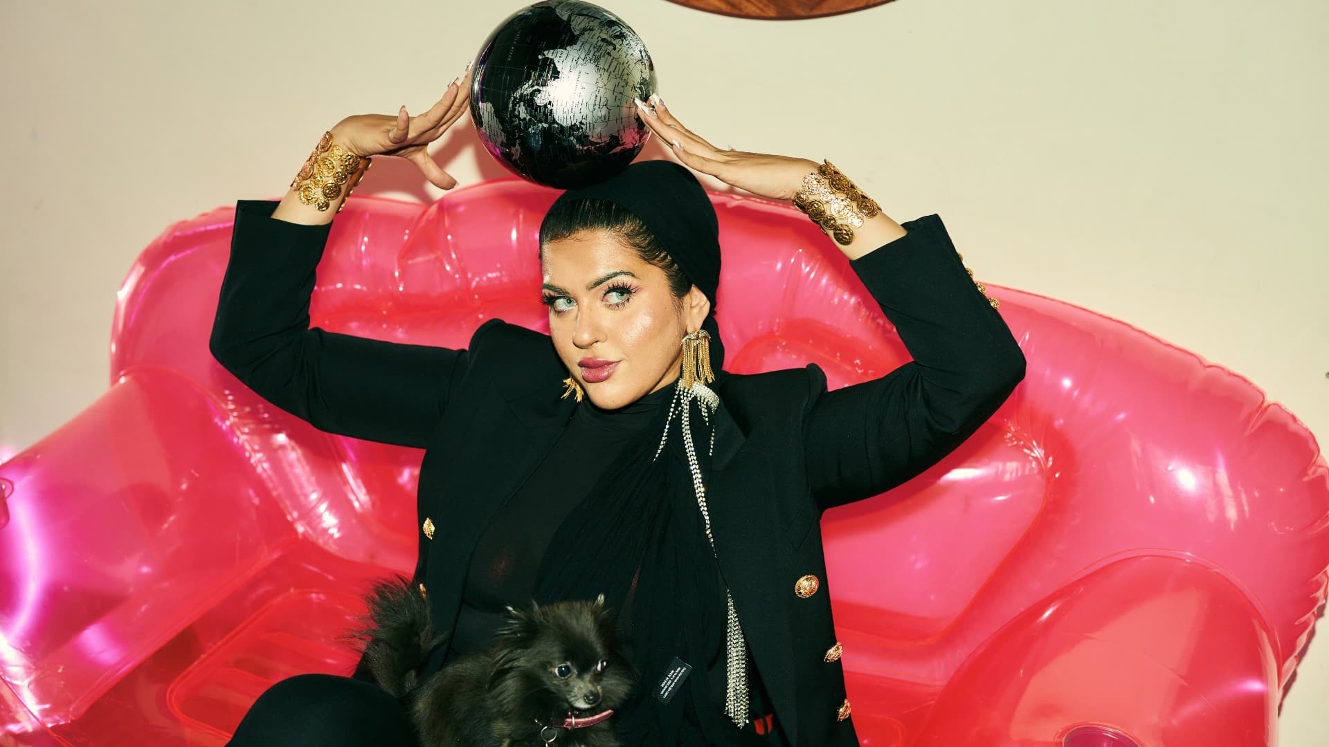 When we visited Al-Khatahtbeh in her Los Angeles home, she wore a pink corset (the signature color of 'Muslim Girl') layered over a black turtleneck. “You wouldn't expect that a Muslim Girl would be able to wear [a corset],” she says, but these are the sorts of challenges Al-Khatahtbeh delights in. She takes fashion’s favorite tactic of layering to a whole new degree, reinterpreting what society deems off-limits.