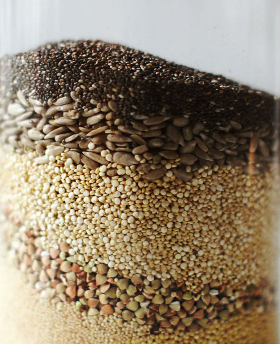 “I’ve never been a fan of porridge just because it’s usually like glue. I came up with the idea of this cereal because I wanted it to be whole grain and I wanted it to have some tooth to it—some interesting textures. I was really in the mood for something warming because it’s winter, but also not wanting to make a hot paste. It’s super high in protein; it’s amazingly balanced with carbohydrates and fats with the chia and the sunflower seeds. It’s just really customizable—you can sweeten it with any sweetener, you can put fresh fruit or dry fruit in it. Oh my God, I’m so embarrassed: I’ve never put nut butter, like almond butter or hazelnut butter, into porridge before and my mind is blown. I couldn’t believe how good it was. It kind of melts into it. I love putting nut butter in that, with something crunchy on top. If you make the same cereal every day of the week, you can make it completely different every morning depending on what you put on top of it.”
