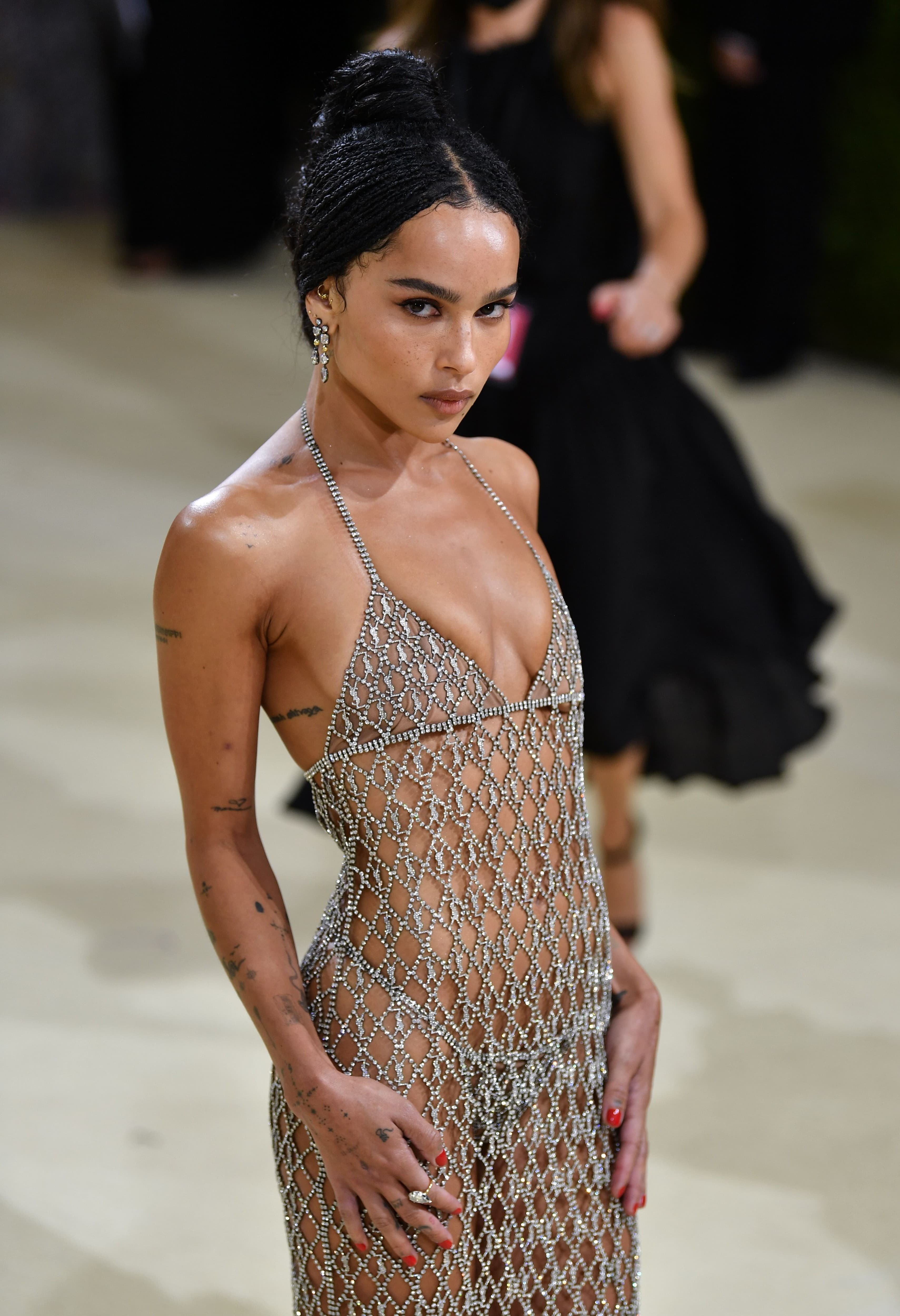 Stephen Lovekin/ShutterstockSomething about the 2021 Met Gala's theme of "In America: A Lexicon of Fashion" had the girls pulling out naked dresses left and right. Model Imaan Hammam wore a star-embellished archival Versace gown with a completely sheer top. Zoë Kravitz wore a sheer chainmail dress (with a matching thong!) by Saint Laurent. Kendall Jenner wore an Audrey Hepburn in "My Fair Lady"-inspired gown that was adorned with crystals and, of course, completely sheer. Julia Garner wore a sheer fishnet-inspired Stella McCartney gown covered in Swarovski crystals. And these aren't even all of the naked dress moments that graced that carpet.
