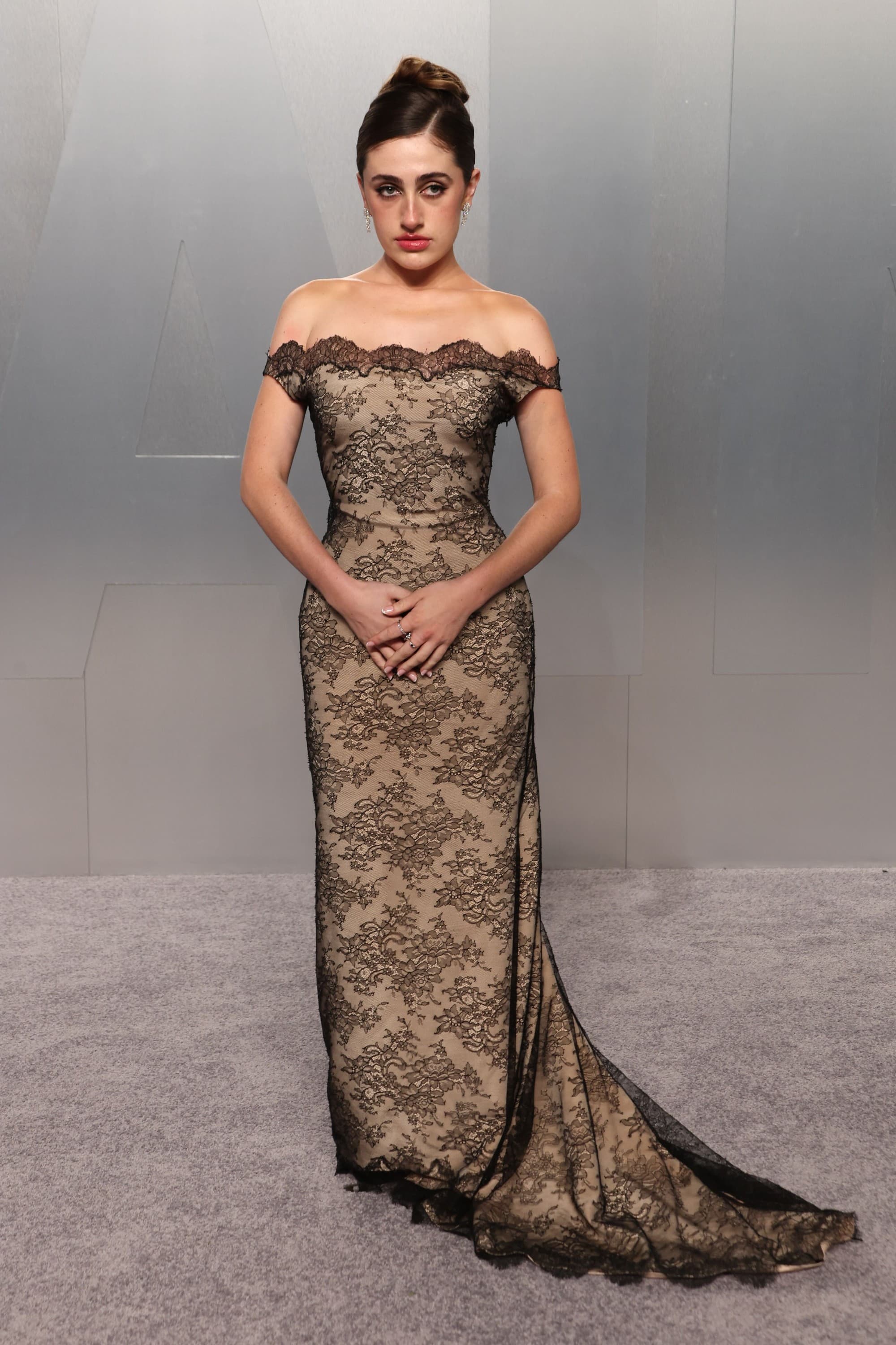 ShutterstockRachel Sennott wore a black lace custom off the shoulder Balenciaga gown with a nude lining.