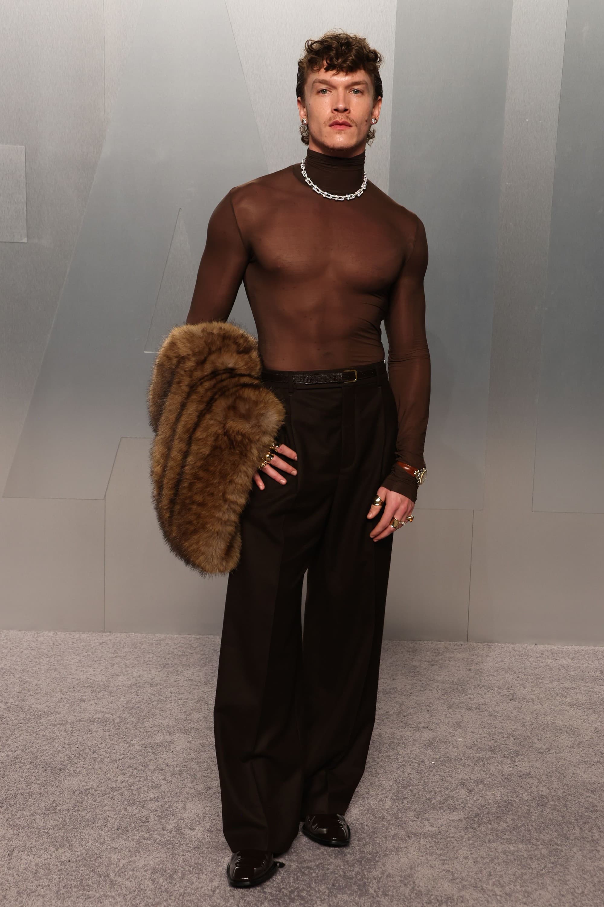 ShutterstockHeated Rivalry star Connor Storrie arrived in a sheer turtleneck look by Saint Laurent. Who said the boys can't have fun too?