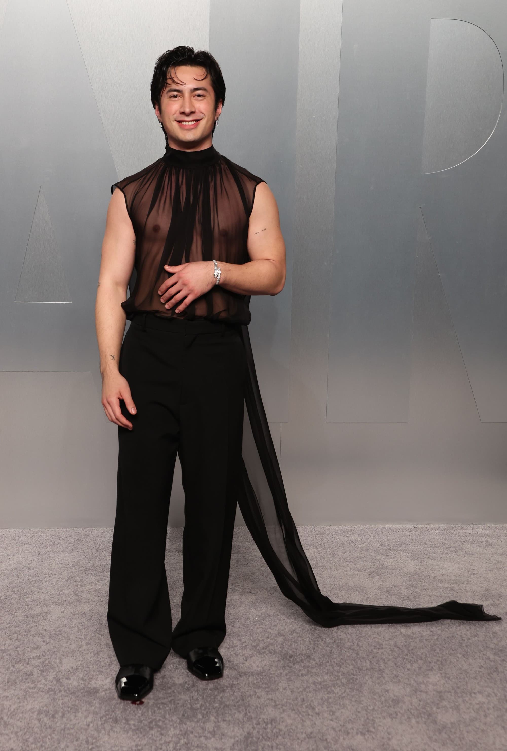 At the afterparty, nominees and winners joined their fellow peers to celebrate, but the one thing we couldn't keep our eyes off of? The influx of naked dresses on the silver carpet. The Vanity Fair Oscars afterparty has become notorious more recently for attendees participation in the naked dressing trend. Who could forget Hunter Schafer's iconic Ann Demeulemeester feather bra look, or Julia Fox's Dilara Findikoglu mesh hair dress? This year was no different, with a surplus of sheer and scantily-clad gowns on our favorite stars. Even Connor Storrie and Hudson Williams joined in!