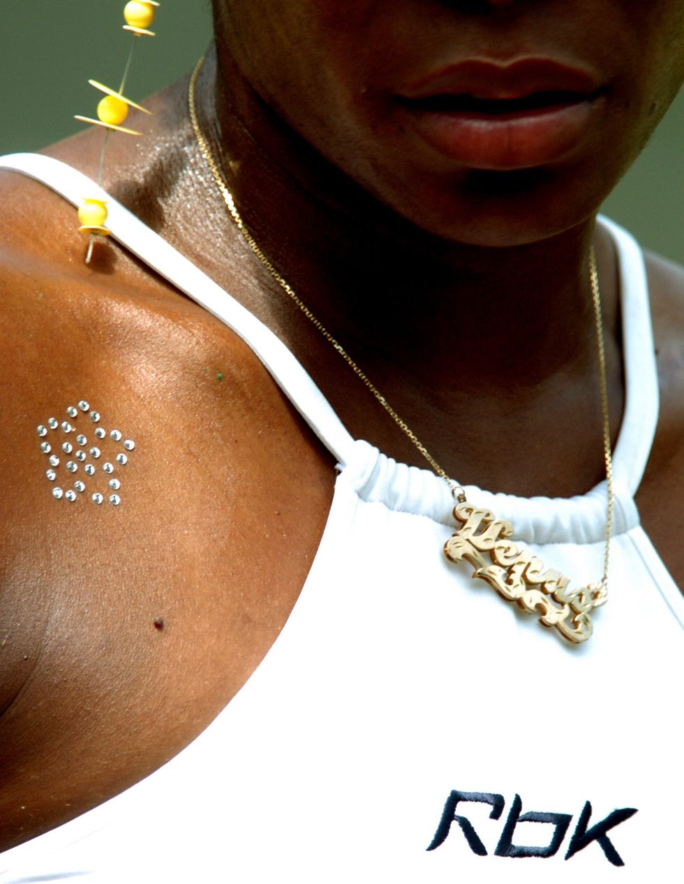 Since then, the popularity of nameplate jewelry has only grown, thanks, in part, to pop culture: Spike Lee’s films “She’s Gotta Have It” and “Do The Right Thing” (in this case, to communicate a clear message), and of course, on Carrie Bradshaw in “Sex And The City,” who brought the “trend” to a white, mainstream audience with no acknowledgment of where it originated, as often happens. “Nameplates became part of popular fashion through the mass marketing and globalization of hip hop music, culture, and style, and because of the way mainstream media consistently sources creative inspiration from communities of color,” Rosa-Salas and Flower tell me.