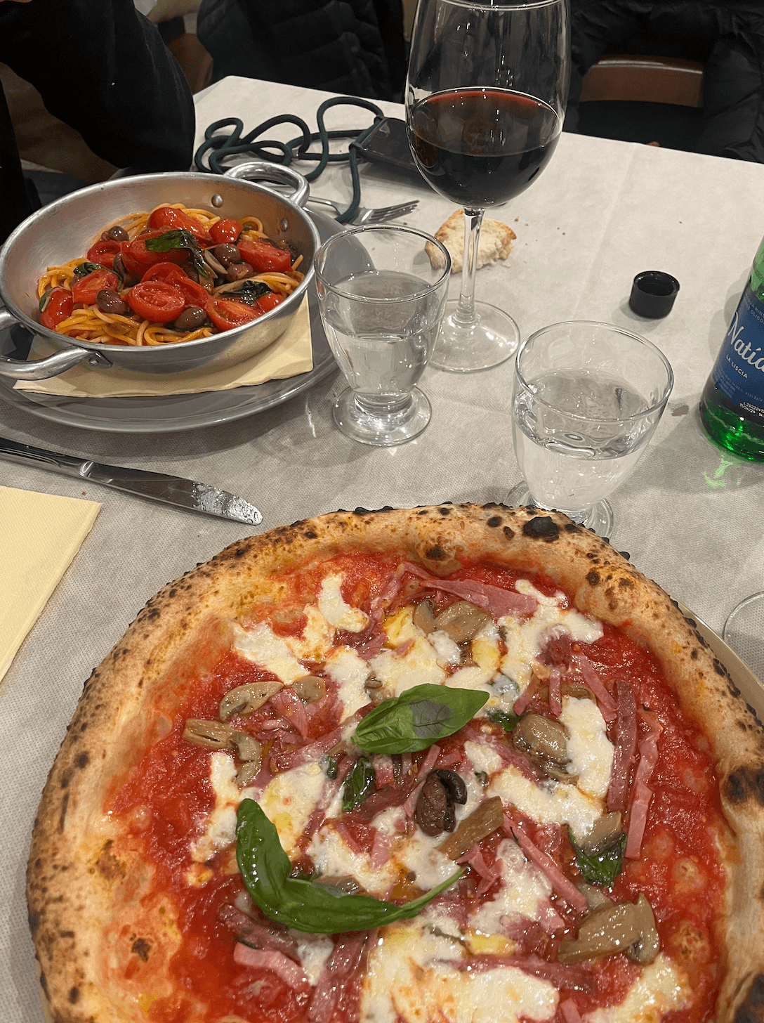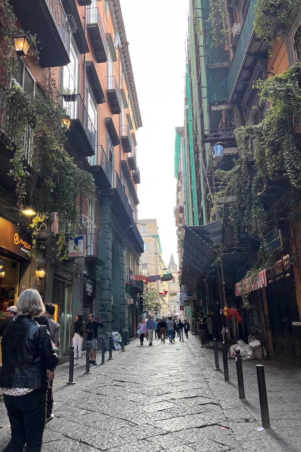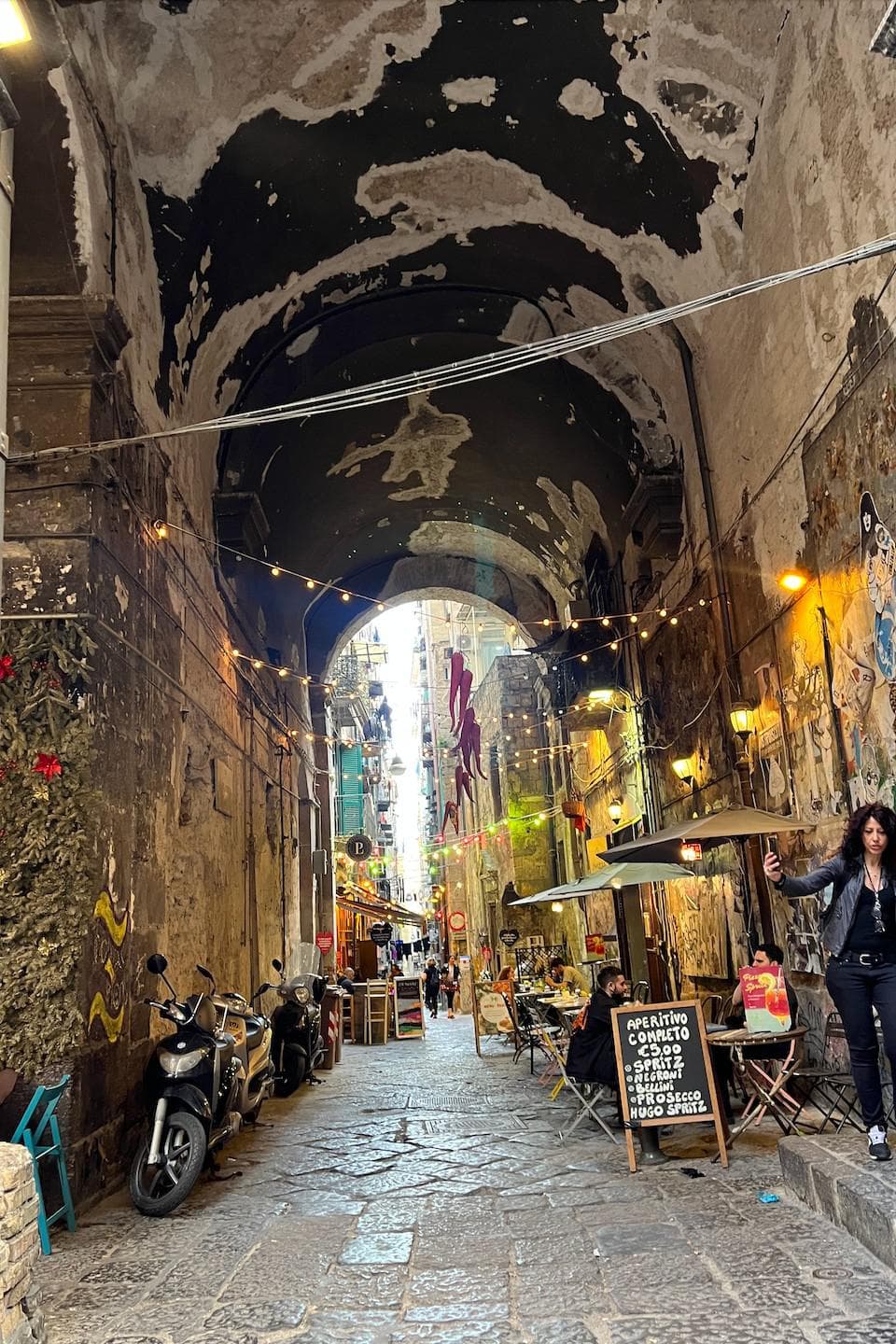 After one of my dinners at a time when I’d usually climb into bed, I asked myself, how tired am I? And how often am I in Naples? I headed to Spazio Nea for a final drink recommended by my wonderful host. Spazio Nea is part art gallery, part bar with an outdoor courtyard. Alone, I had a crisp red wine under a Neapolitan night sky. It all felt cinematic: Italian words ringing in my ears from those nearby as a crisp breeze flowed within the ancient courtyard.