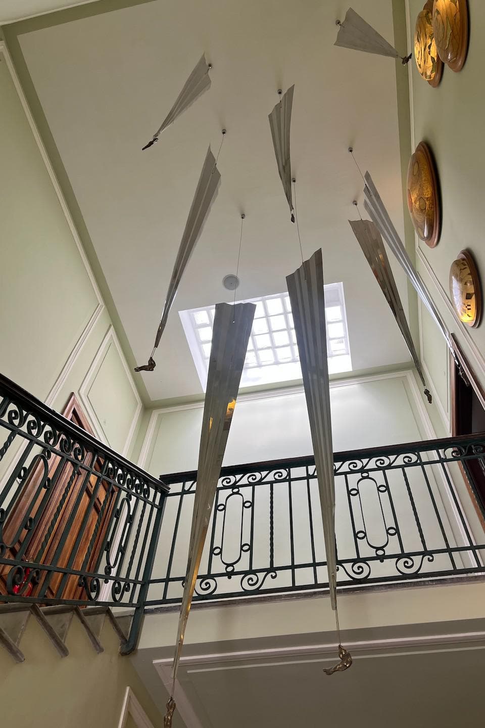 Naturally, the hotel is a treasure trove of gorgeous art and design. The owners craft every piece of decor. That includes the door handles, coffee tables, mirrors, shower racks—nearly everything in the rooms. Descending, needle-like sculptures adorn the main hall, and triangular, canoe-tip sculptures spread through the property. (All designed and made by them, too.) For those looking for a visual treat, Ines and Vincenzo are waiting with open arms.