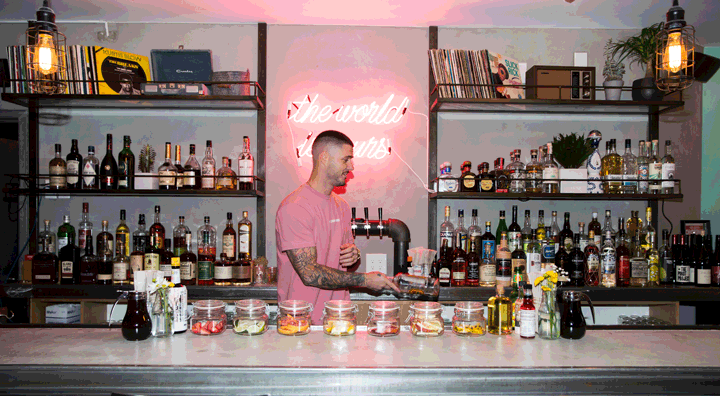 “My hospitality background really comes from my father being a bartender,” says Seymour, who grew up on Manhattan’s Upper West Side. “He was the local guy who everybody knew, so with Sweet Chick, it was me being nostalgic about how he built a community around the bar.”