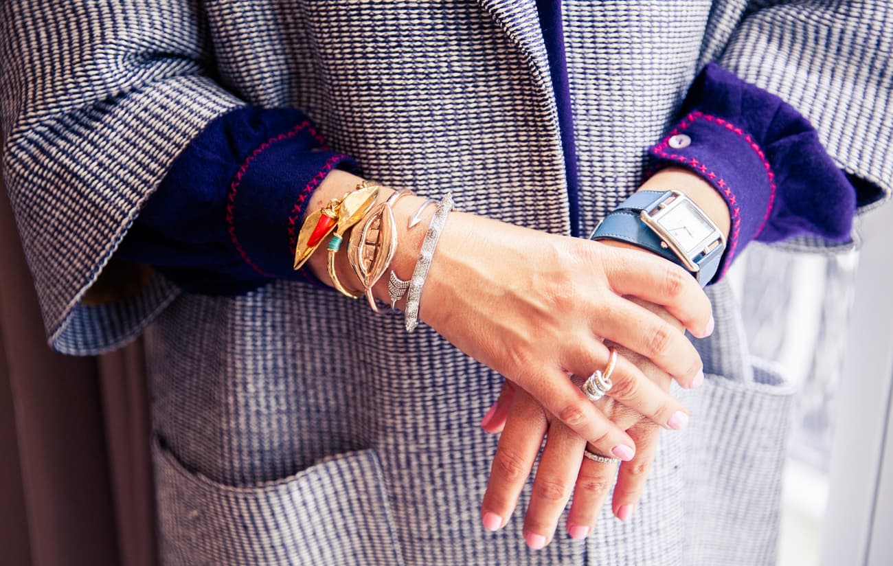 “I need to be comfortable, so recently I’ve simplified more and more. I go through different weather when I travel—and maybe in the morning I’m in a meeting, but I have to be at work all day and then go for drinks or dinner. So there are a lot of white shirts going on in my wardrobe recently! And I do like big shoes, because I’m quite challenged height-wise—so I like platforms and heavy shoes that I can actually run around in. They’re comfortable and they give me height. I also like a little bit of wit and humour—I’m not very classic, but good quality matters a lot to me.