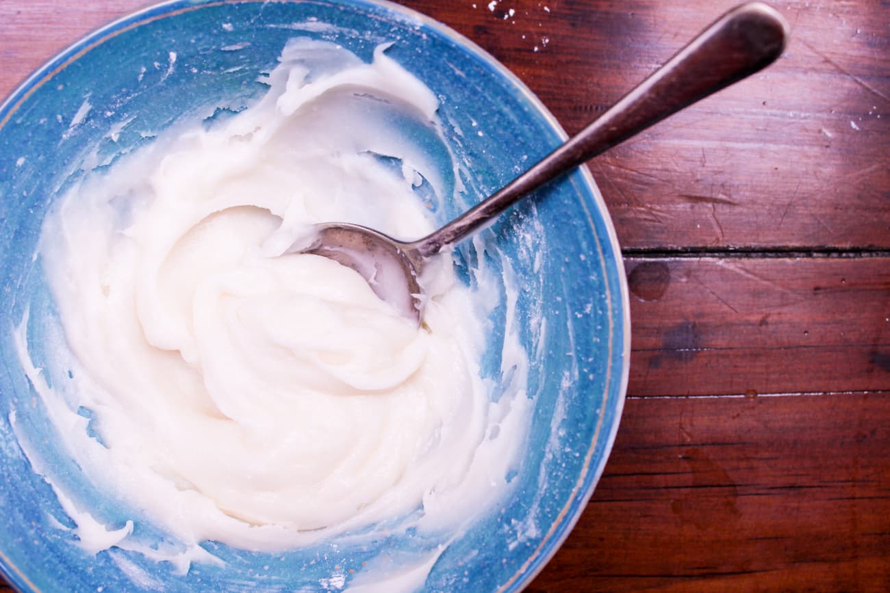 In a bowl, mix the Shea butter and coconut oil with a fork until they form a smooth and creamy consistency; make sure there are no lumps.