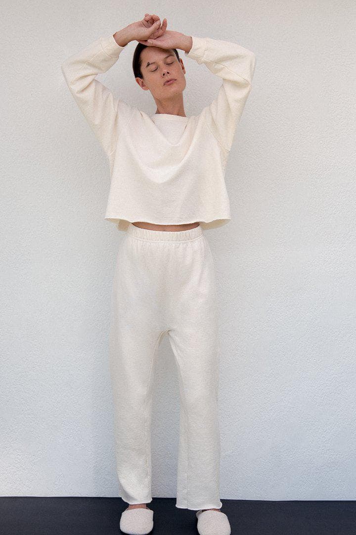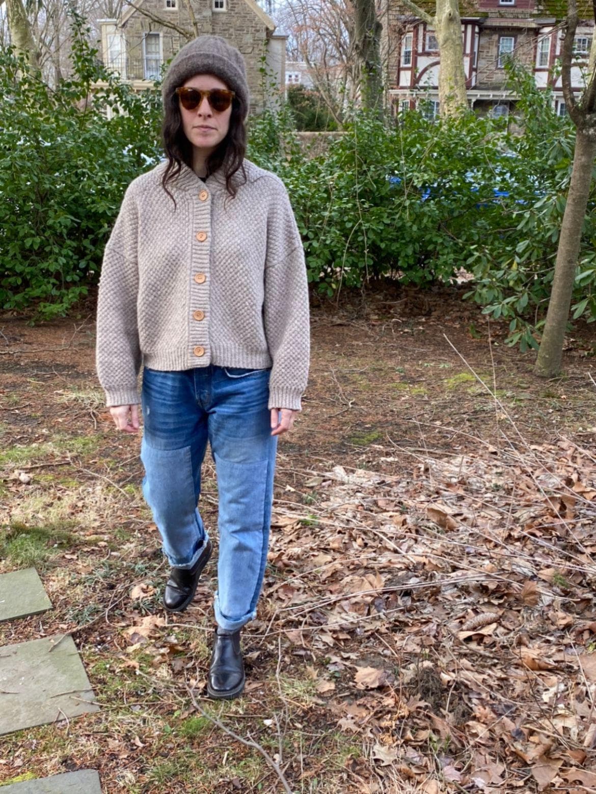 Leah D'Ambrosio, founder and designer of Wol Hide, classifies a pair of blue jeans and a classic white t-shirt as her neutrals—sound familiar? She typically constitutes neutrals in the context of her own style as raw natural materials, "so an undyed, unbleached silk, cotton, or wool. I also love a peachy beige, a deep indigo blue, or denim and army green as neutral colors. I really don't own any patterns, but for me, a texture or a variegated material or yarn acts as a pattern."