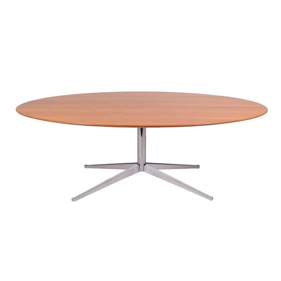 “Architect, furniture designer, interior designer, entrepreneur—Florence Knoll was dedicated to functionality and organization as is manifested in her polished, efficient tables and chairs and her skillfully realized office plans. A product of the Cranbrook School, the famed design crucible in suburban Detroit, Knoll knew everyone who was everyone (from the Saarinens and Eameses to Bauhaus émigrés Marcel Breuer and Ludwig Mies van der Rohe), and after her 1946 marriage to furniture manufacturer Hans Knoll, she commissioned many of these greats to produce lines for their eponymous company.”