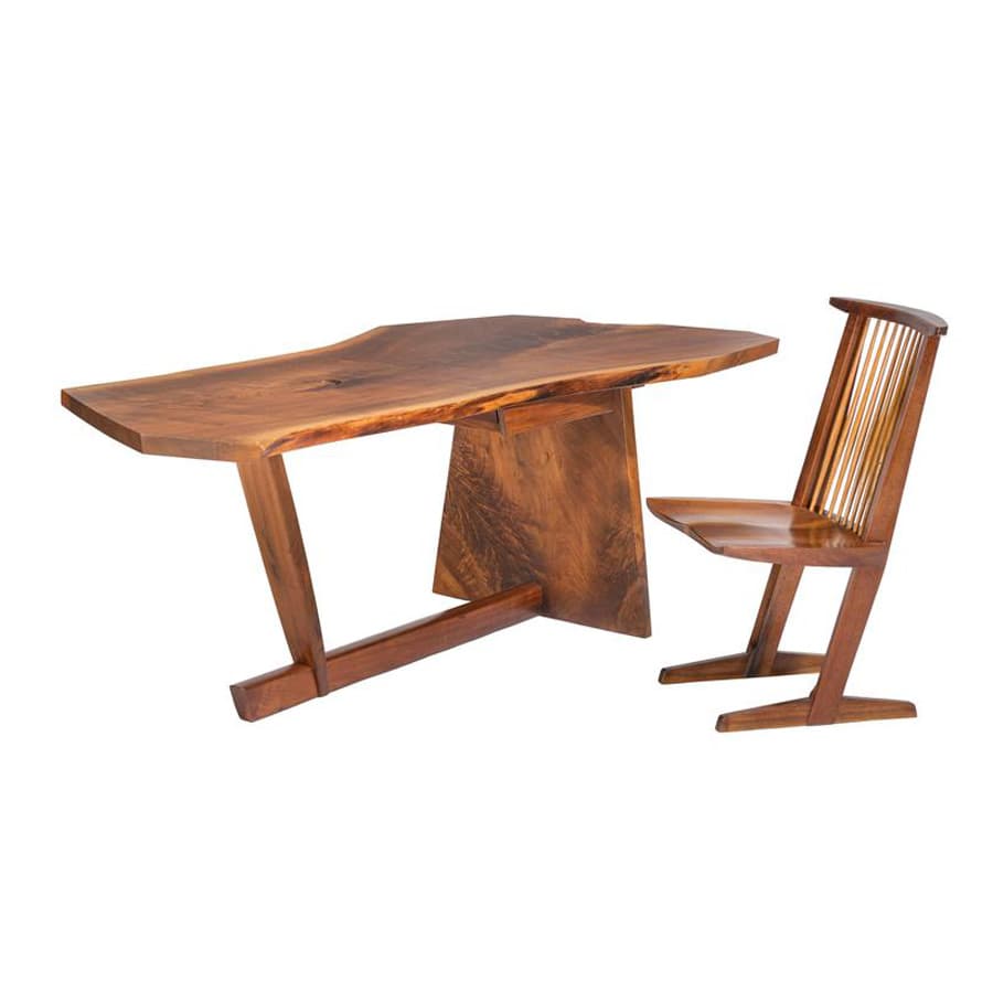 “A master woodworker and M.I.T.-trained architect, George Nakashima was a leading light of the American Studio Furniture movement who disdained industrial methods and materials in favor of a personal, craft-based approach to design. What sets Nakashima apart is the poetic style of his work, his reverence for wood, and the belief that furniture could evince