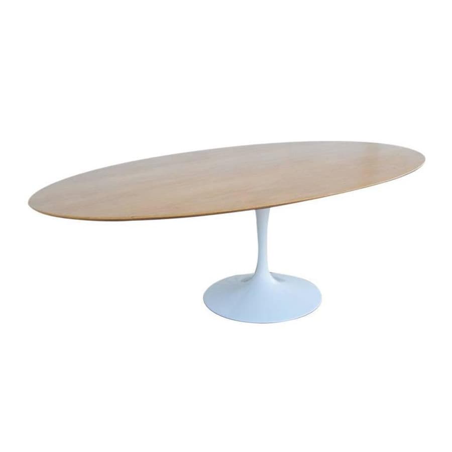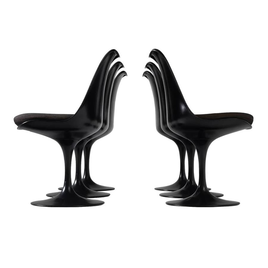 “Through his work as an architect and designer, Eero Saarinen was a prime mover in the introduction of modernism into the American mainstream. Particularly affecting were the curvilinear forms seen in Saarinen’s furniture and his best-known structures: the gull-winged TWA Flight Center in New York (opened 1962), Dulles International Airport in Virginia (1962), and the Gateway Arch in St. Louis, Missouri (1965). Saarinen has a peerless modernist pedigree: his father, Eliel Saarinen, was an eminent Finnish architect who, in 1932, became the first head of the Cranbrook Academy of Art, in suburban Detroit, where the younger Saarinen met and befriended several luminaries of mid-century modernism, among them Harry Bertoia, Florence Knoll, and Charles and Ray Eames.”