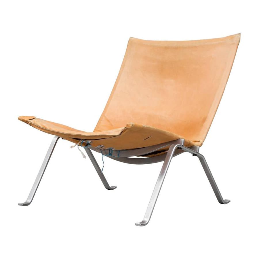 “A trained cabinetmaker, Poul Kjærholm used industrial methods and materials in the 1960s, which brought a fresh, graceful, sleek new style to Danish modern design. Although he employed natural materials such as cane and leather to a far greater extent than his peers, Kjærholm embraced the use of steel (rather than wood) framing for his chairs and tables.”