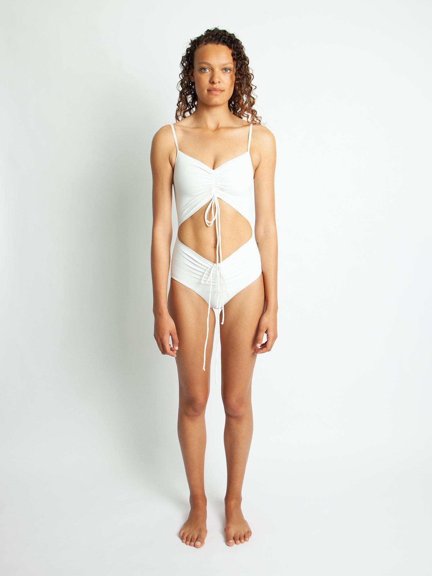 The dynamic design duo continues to be inspired by nature and culture: "We fell in love with these neutral earth tones for our first collection, as they embody our romantic aesthetic. IV is for the minimal girl on the go. Living in NYC, we are constantly running around, leaving the house early, and coming home late. [So] whether you're rooftop poolside by morning and running to dinner at night, our suits are meant to support you throughout the day, matching back to your favorite ready-to-wear pieces. You will also notice Latin influence throughout the collection and as we [expand] into ready-to-wear."