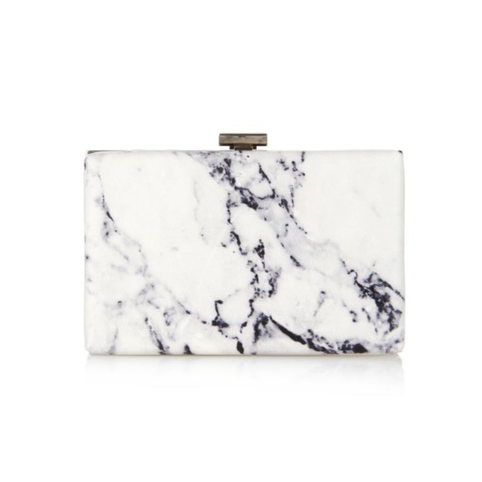 Out with the old, and in with the marble-print minaudière. Skip the sequined bag—it looks like you’re holding a fish—in favor of a different kind of statement-maker: a granite-look Balenciaga, sticker-covered Anya Hindmarch or a Micro-Monster baguette (gluten-free, of course).