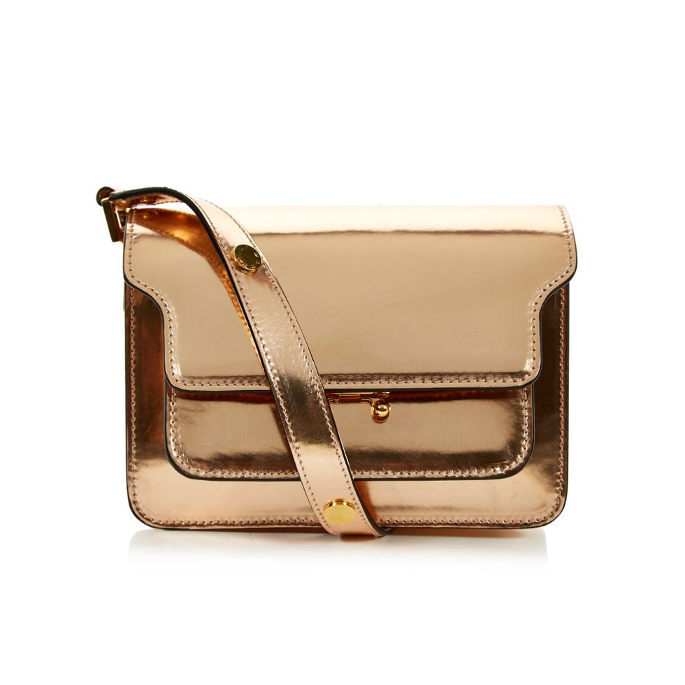 Set on going the metallic route? There’s a way to do shimmer that isn’t cliché, like a few crystalline closures on a Marni mini, or a golden pleated midi skirt you could actually wear again without looking like you’re about to pop a confetti gun.