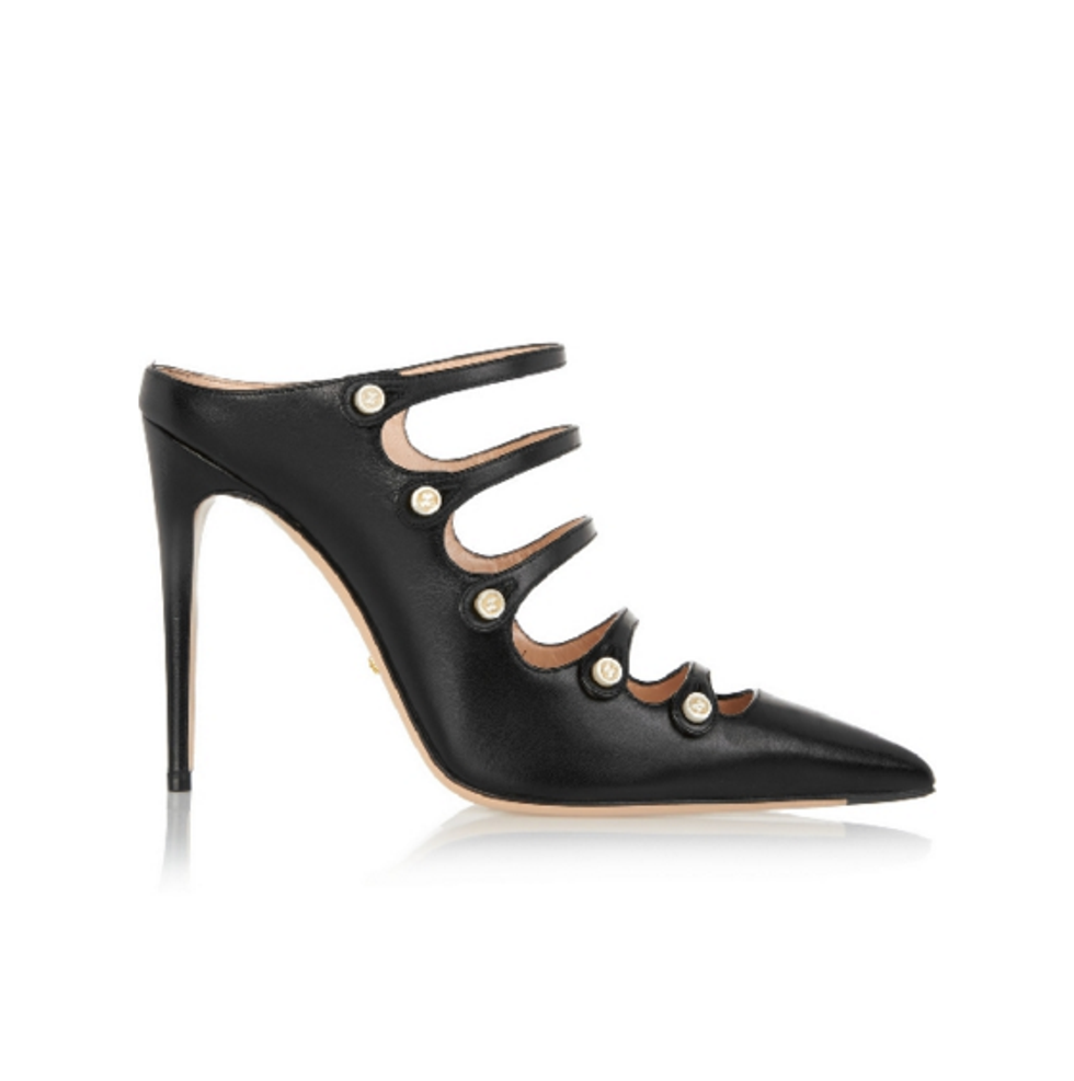 When you inevitably take off your Stella McCartney flatforms to do your impeccable Drake-in-a-box dance, you’ll want to know exactly which are yours amid the piles of golden heels. This cheeky peace-sign pair or these deliciously ‘90s Gucci mules trump a Cinderella situation any day.