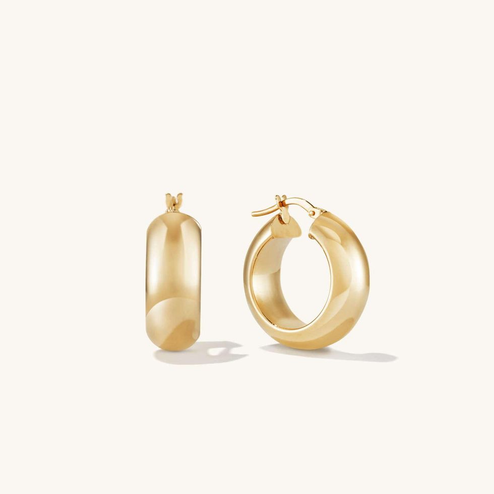 If an outfit is loud or more over the top, I usually opt for simple earrings to keep the look from coming off as too gauche. These chunky gold hoops from Mejuri are classic and subtle, making them perfect to pair with a bold get-up.