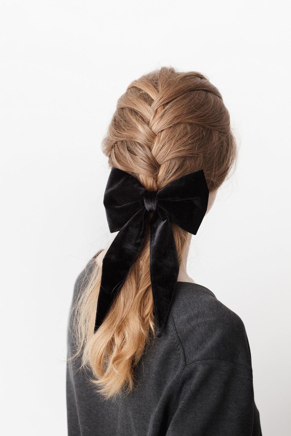 With the hard angles of the above dress, I need something to add a soft feminine touch. I love adding an oversized hair bow as a finishing touch throughout the holiday season—it’s my attempt at festive dressing.